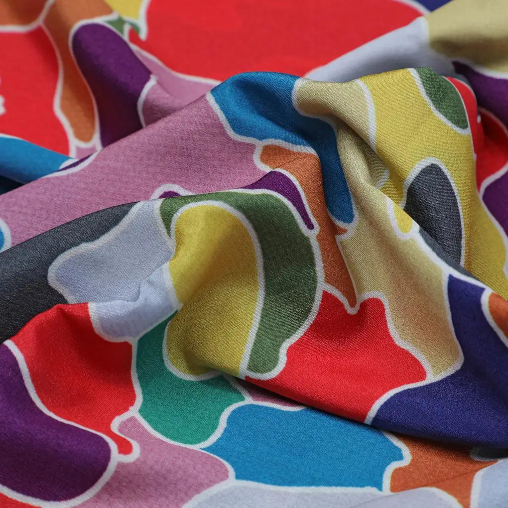 Colourful Marble Abstract Art Digital Printed Fabric - Silk Crepe