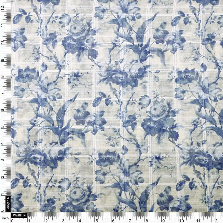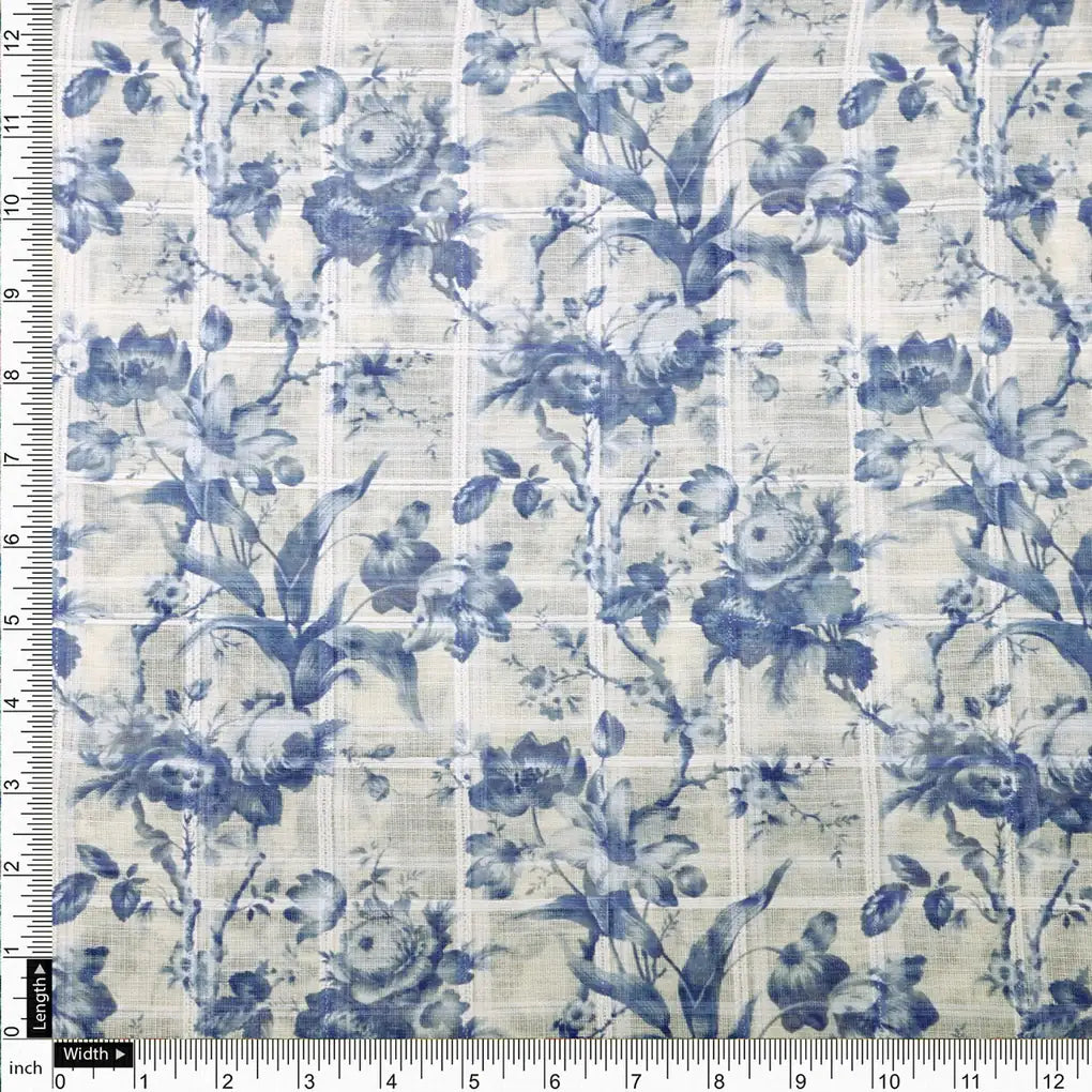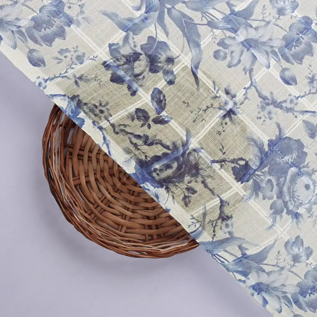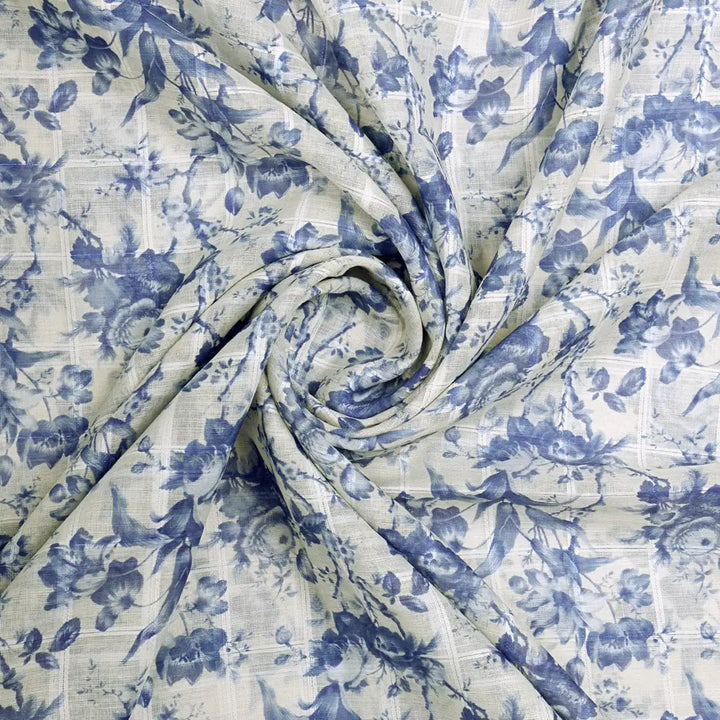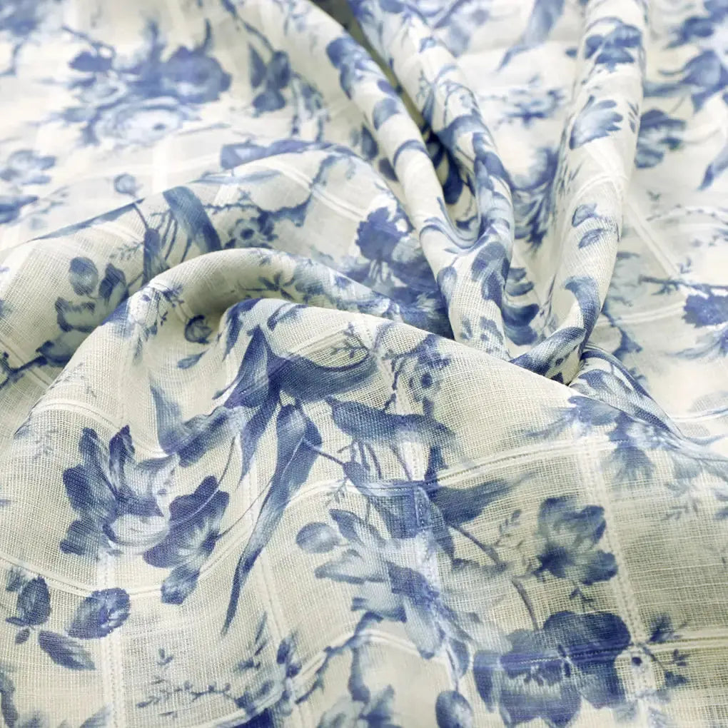 Indulge in the beauty of nature with our stunning Linen digital printed fabric, featuring an exquisite floral and leaf pattern in vibrant Blue and Cream hues. This premium FAB VOGUE Studio fabric adds an elegant and sophisticated touch to any home dacor project, making it the perfect choice for curtains, upholstery, and other decorative accents.