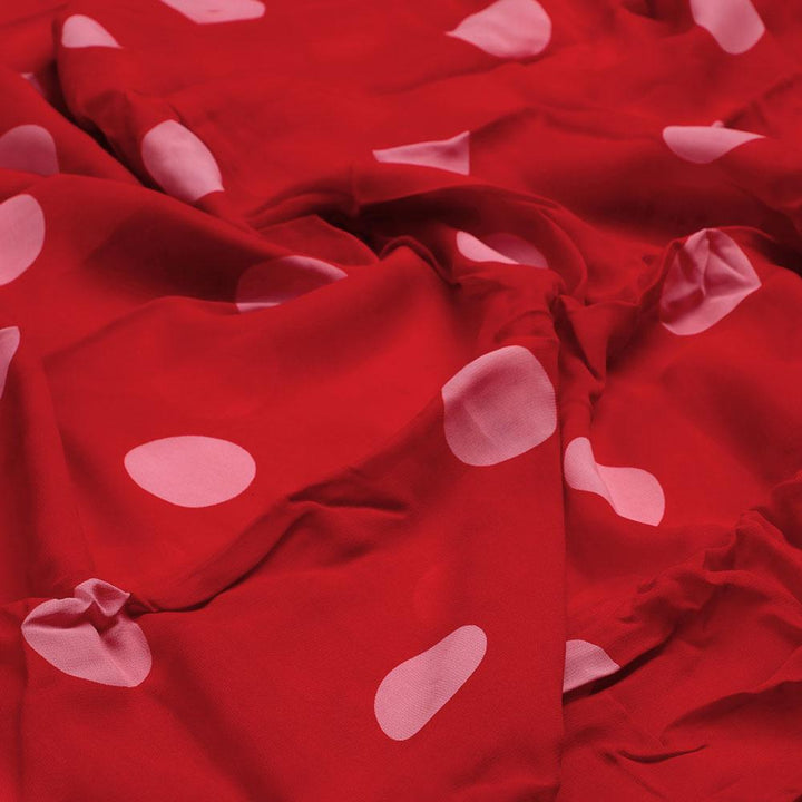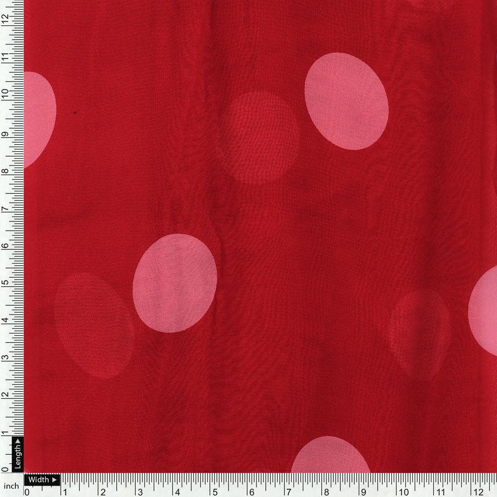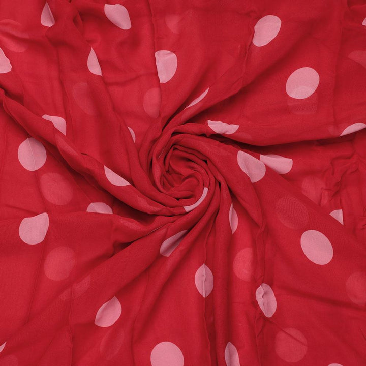 Huge Red Polka Dot Digital Printed Fabric - Pure Georgette