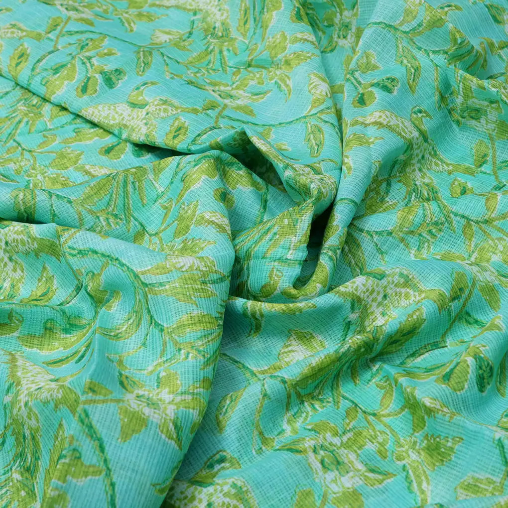 Gorgeous Green and White Bird Print Kota Doria Digital Printed Fabric