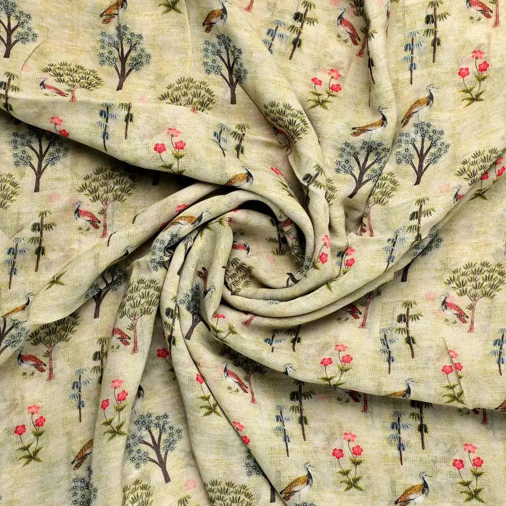 ₹ 284.00 per meterPista Chinoiserie With Birds Digital Printed Fabric - Kora Silk