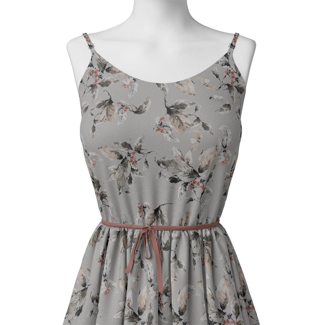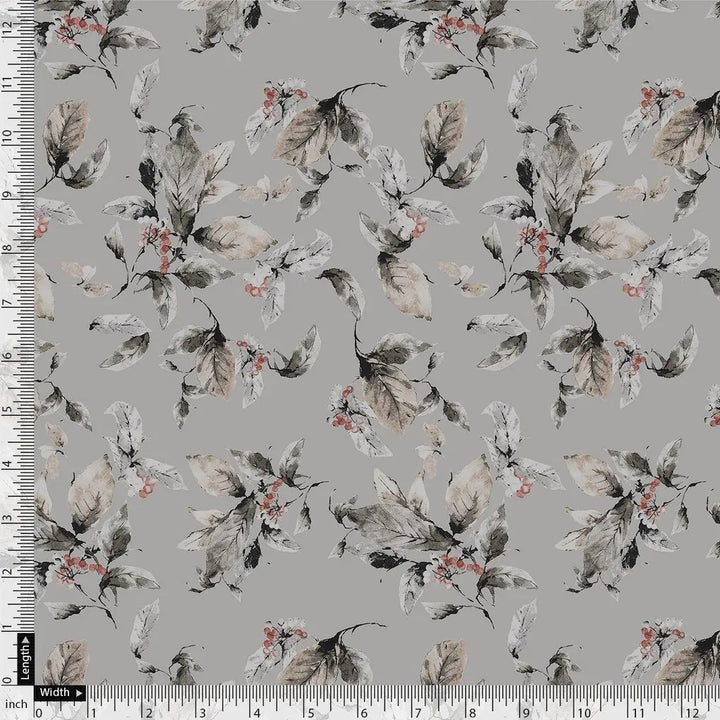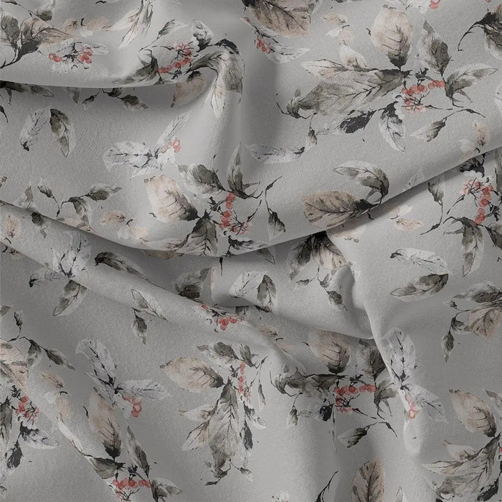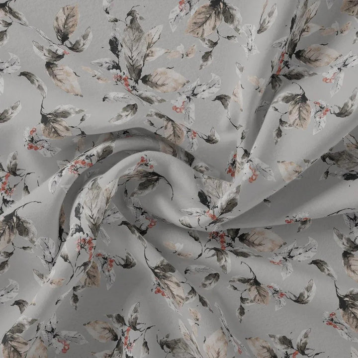Royal Vintage Greyish Leafs Digital Printed Fabric - Pure Chiffon