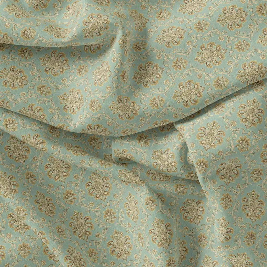 Beautiful Golden Fleur De Lis Pattern Digital Printed Fabric - Kora Silk