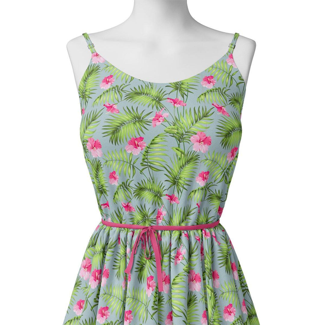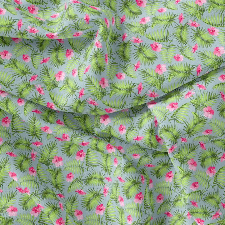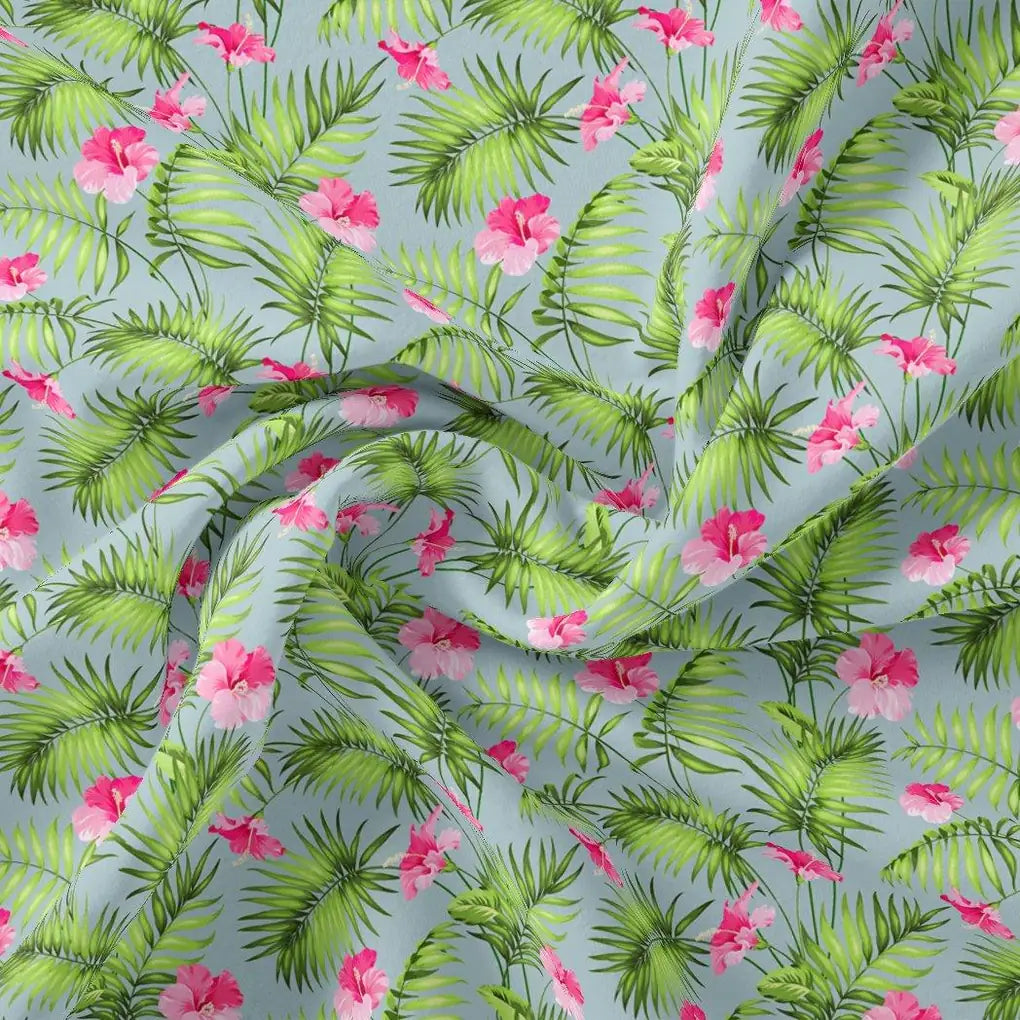 Tropical Leaves Pink Hibiscus Flower Digital Printed Fabric