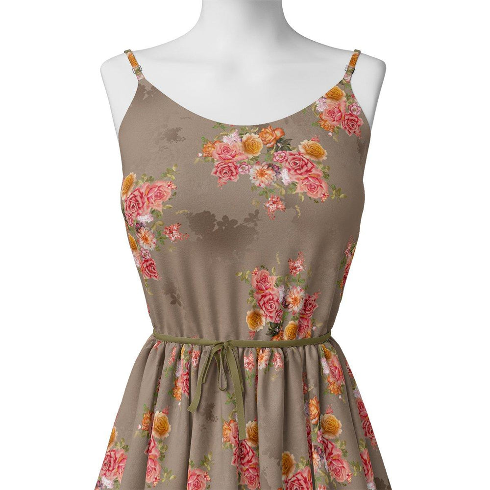 Watercolour Brown And Gray Colour Colico Flower Digital Printed Fabric