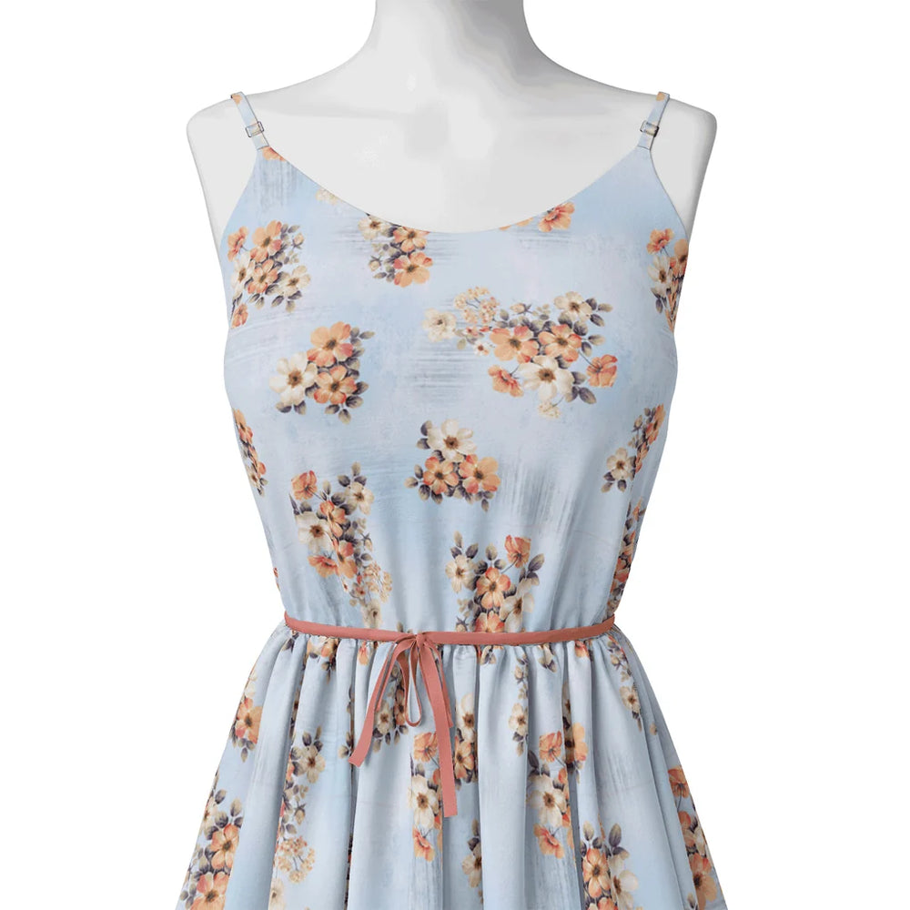 ₹ 289.00 per meterMorden Periwinkle Floral Flower With Gray Leaves Digital Printed Fabric