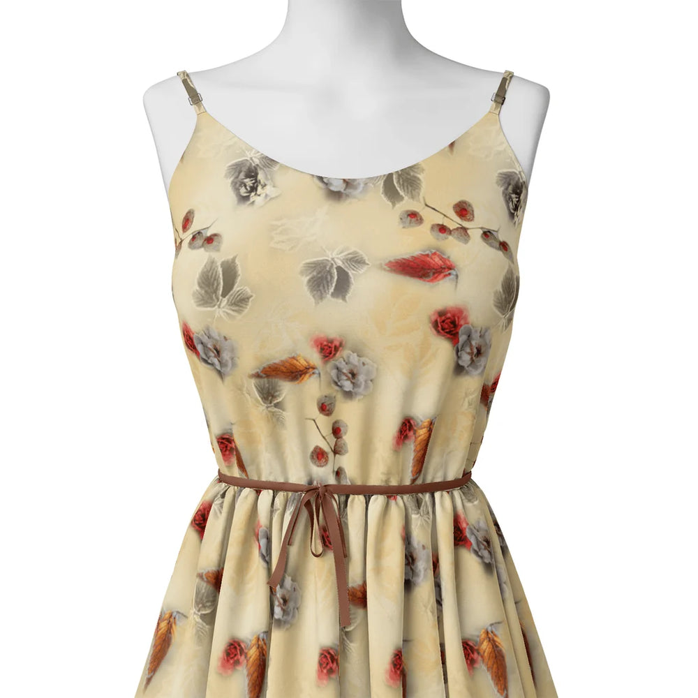 Decorative Roses With Autumn Buds Art Digital Printed Fabric