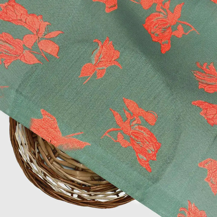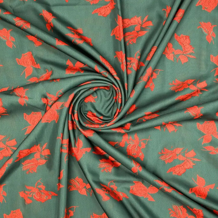 Tulips Roses With Orange Colour Digital Printed Fabric - Poly Muslin