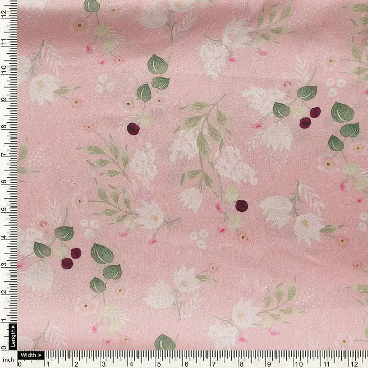 Disty Print On Peach Digital Printed Fabric - Japan Satin
