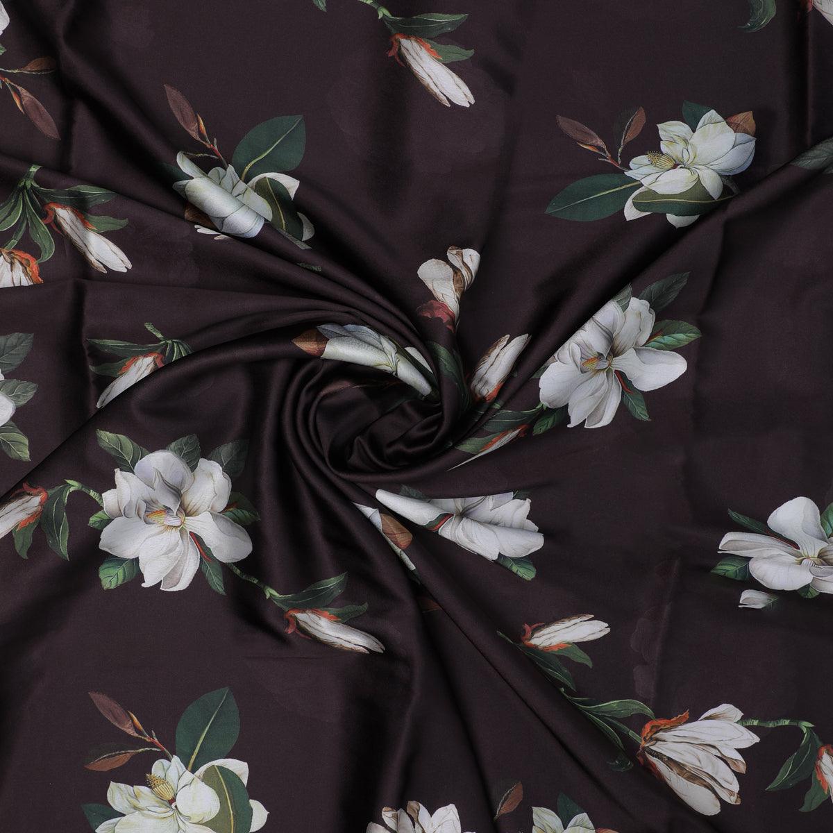 Are you looking for a beautiful fabric for your next project? Look no further than FAB VOGUE Studio's Big White Flower Repeat Japan Satin Unstitched Printed Fabric. This gorgeous fabric is made from high-quality polyester and Japan Satin, giving you a luxurious feel and look. The fabric features a stunning brown floral pattern that is sure to add a touch of elegance to any project. Whether you're making a dress, a blouse, or a quilt, this fabric will be the perfect choice. With its soft texture and vibrant colors, you can't go wrong. Get your hands on this exquisite fabric today and start creating something beautiful.