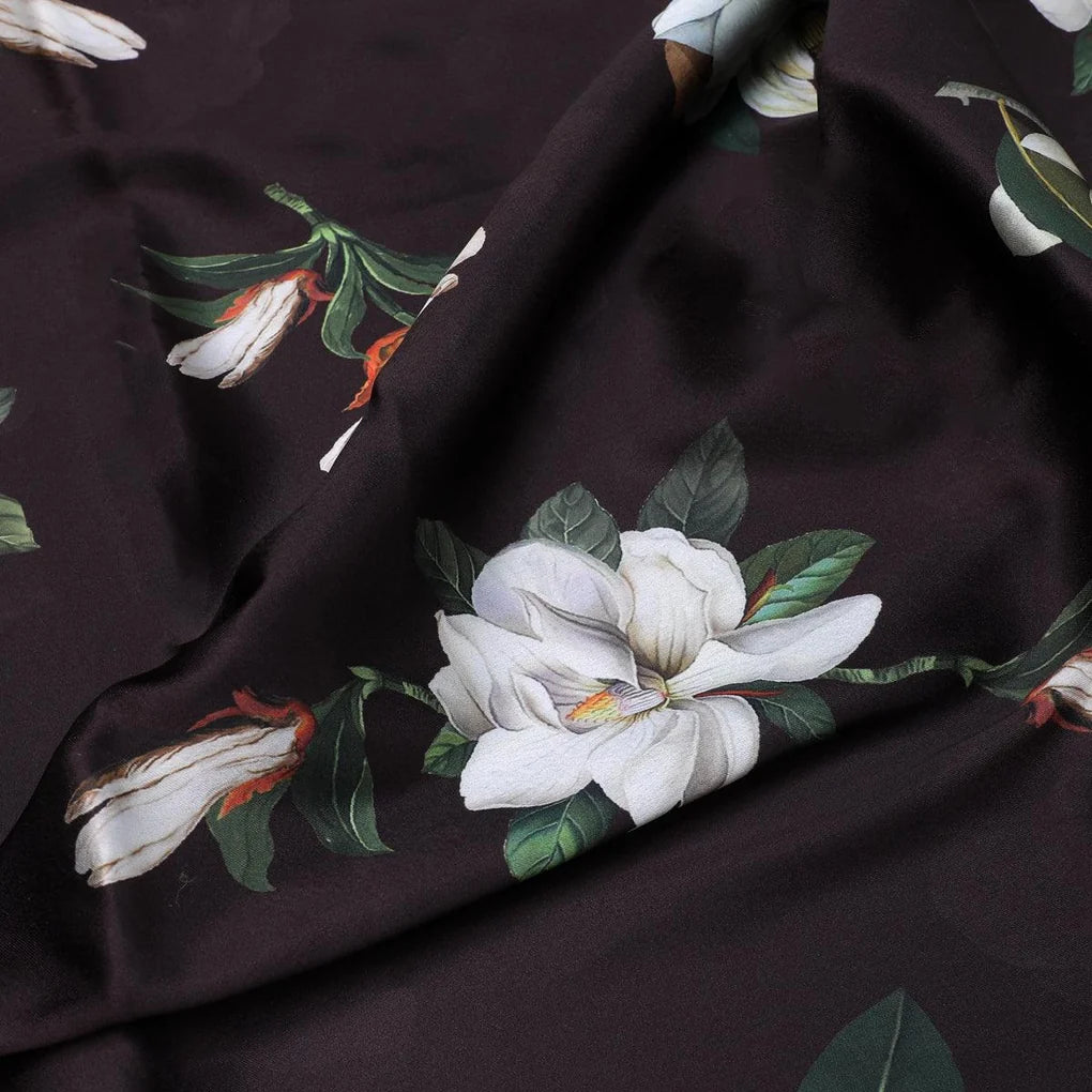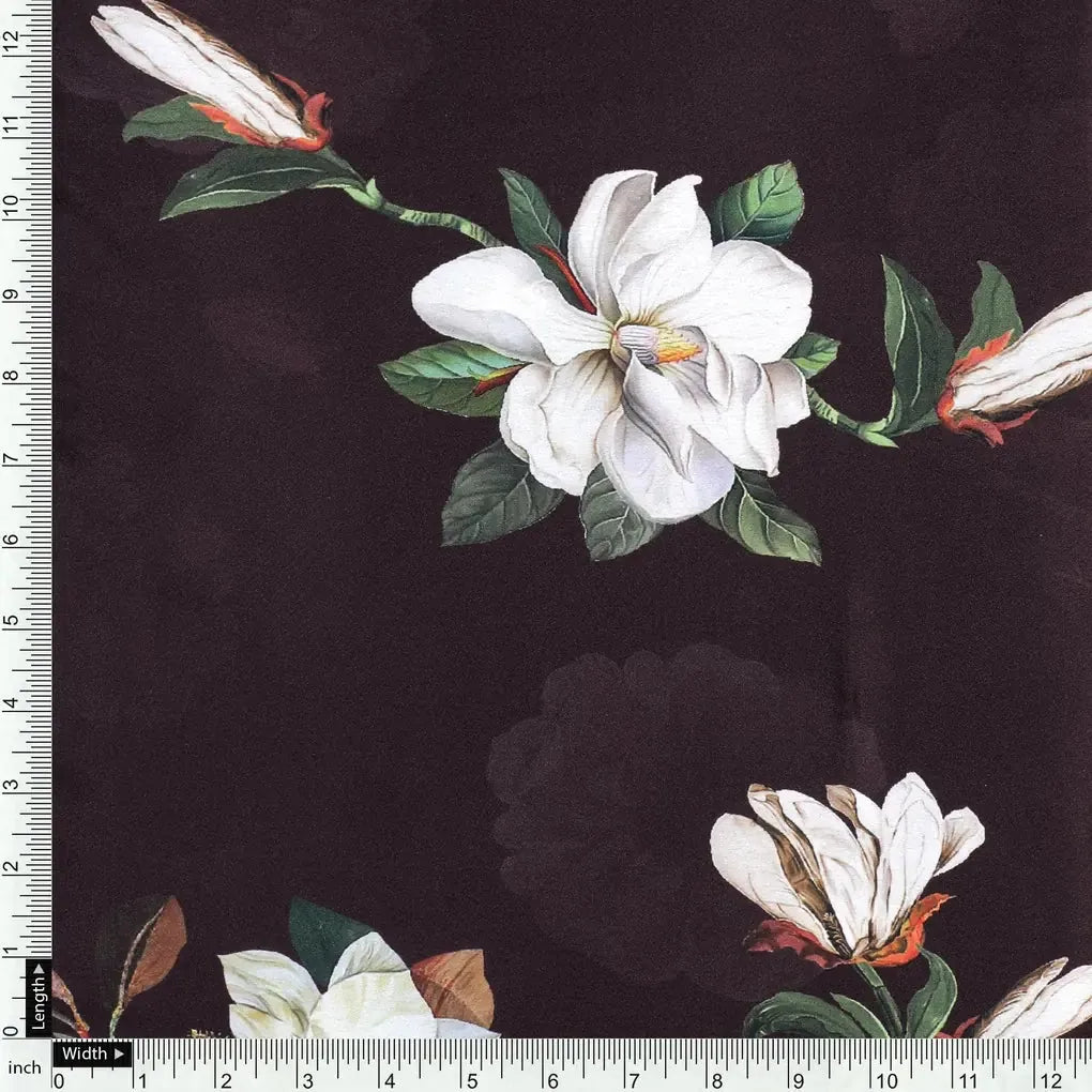 Big White Flower Repeat Digital Printed Fabric - Japan Satin