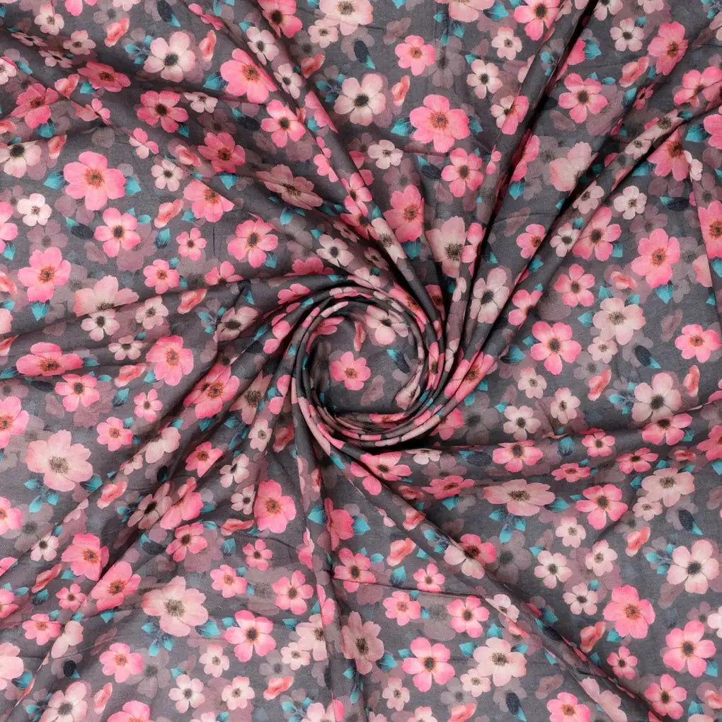₹ 350.00 per meterBlack And Rustic Look Flower Digital Printed Fabric - Japan Satin