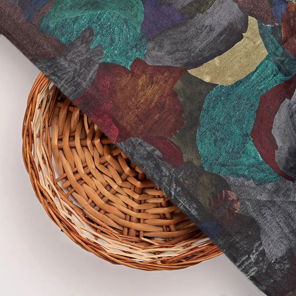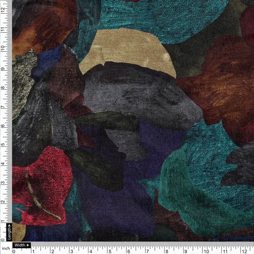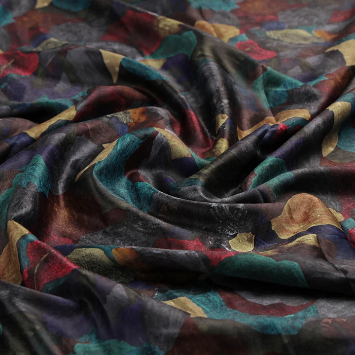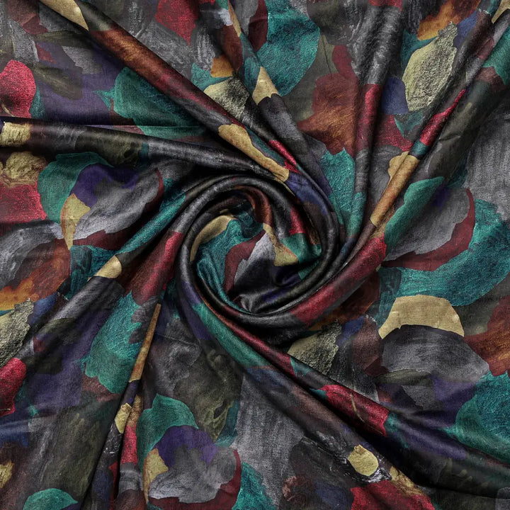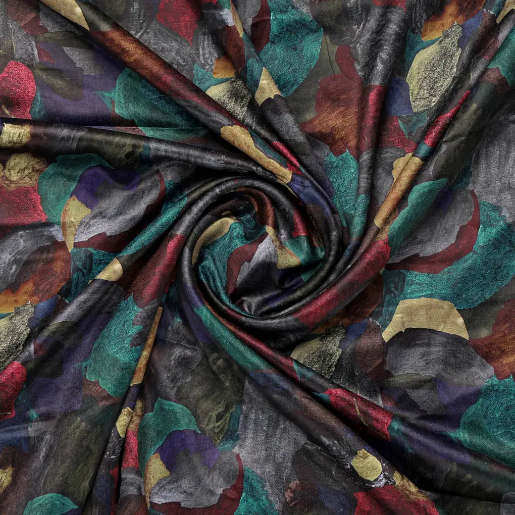 This elegant and stylish Abstract Printed Velvet fabric is perfect for adding a touch of sophistication to your wardrobe or home. Its rich, black background is accented with vibrant teal, brown, turquoise blue, red, and beige abstract patterns, creating a captivating and modern design. Made from high-quality velvet, this fabric is soft, luxurious, and drapes beautifully. It is ideal for stitching various outfits, including dresses, tops, and skirts, and can also be used for home decor purposes such as curtains, upholstery, and cushion covers.