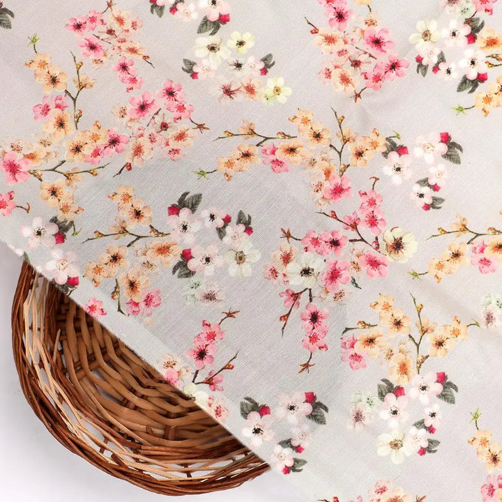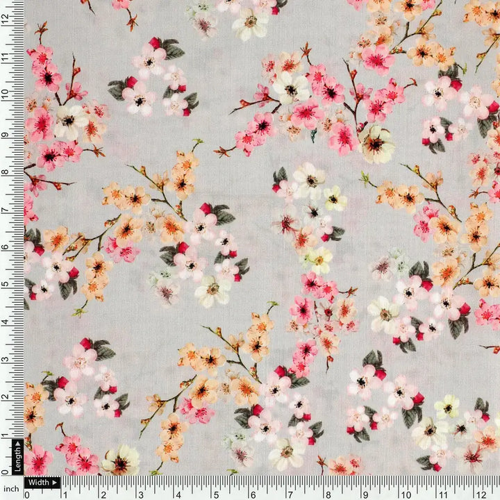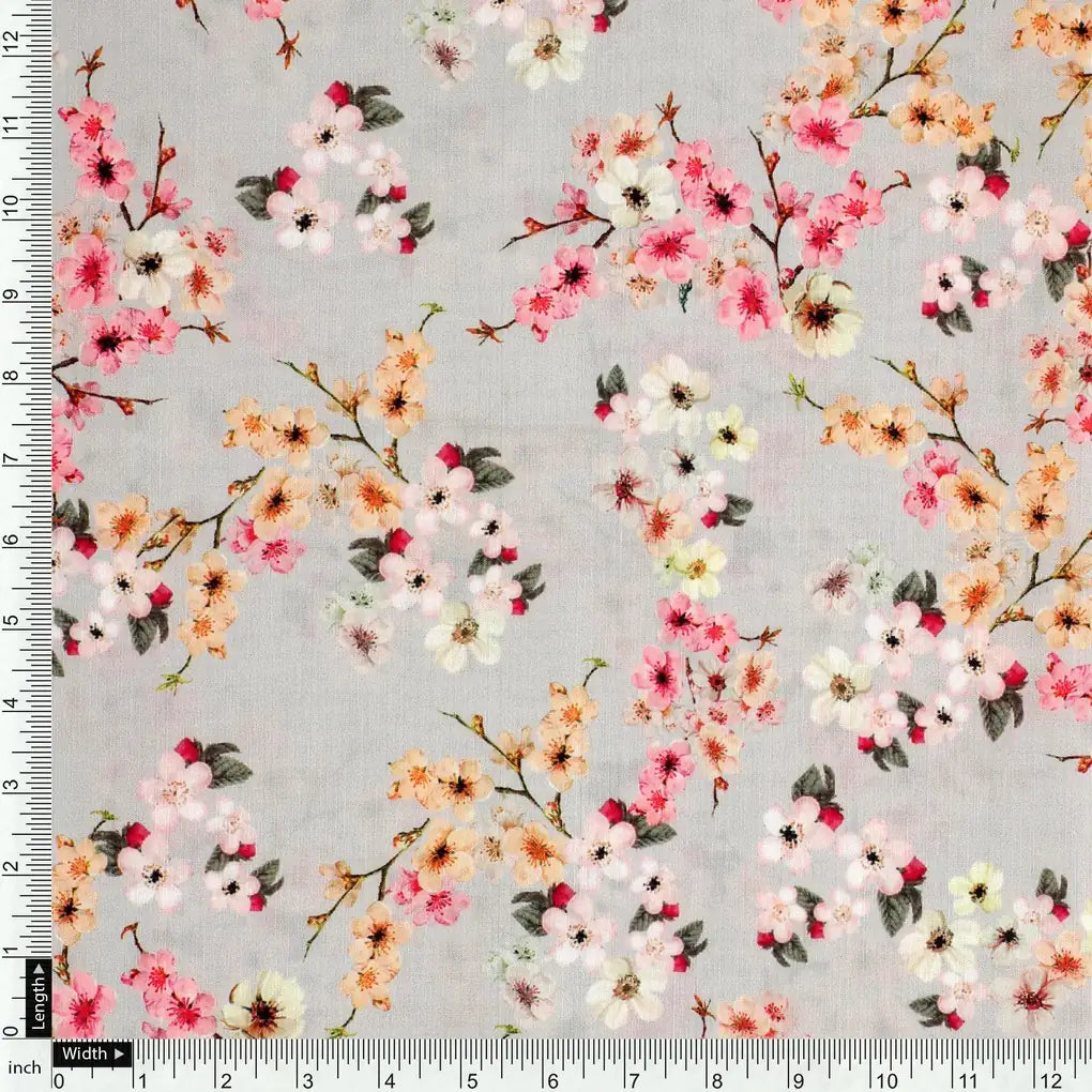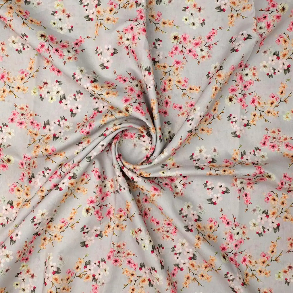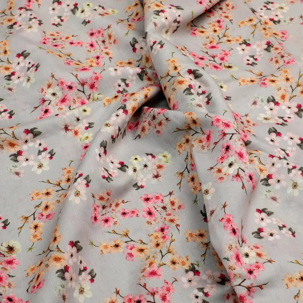 Capture the essence of elegance with this Beautiful Ditsy Gold Sand With Pot Pourri Colour Kora Silk Kurtis Printed Fabric from FAB VOGUE Studio. Crafted from Polyester, this fabric is perfect for making stylish kurtis. The floral pattern in grey color gives it a unique look. Buy this fabric from FAB VOGUE Studio and create a timeless wardrobe piece.