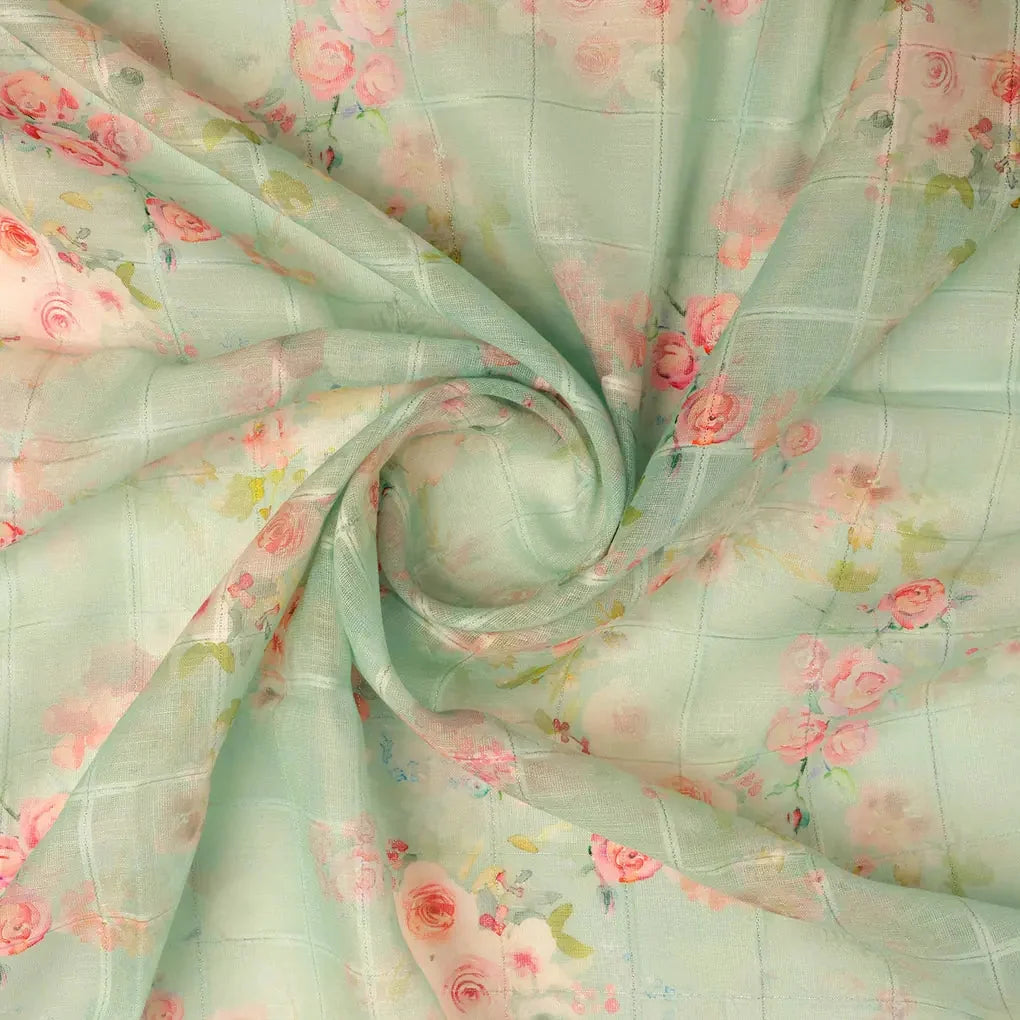 ₹ 289.00 per MeterGreen Floral Printed Dola Silk Fabric