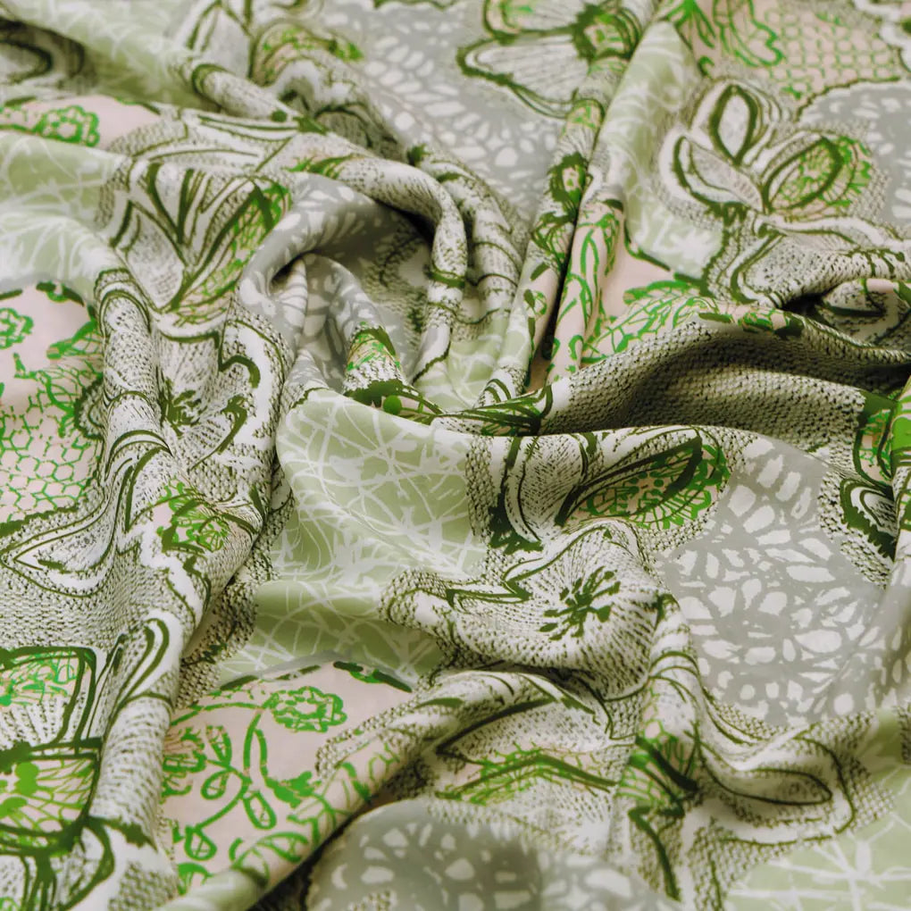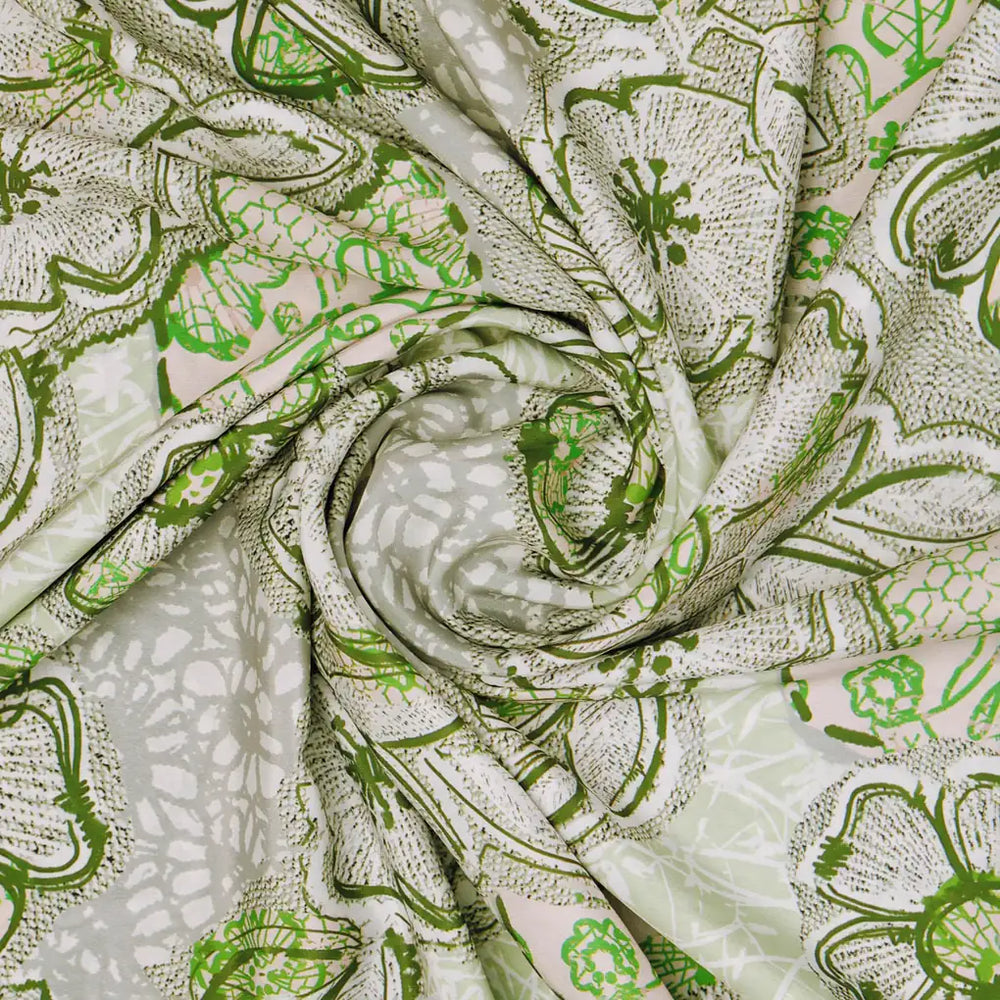 ₹ 399.00 per MeterGreen Floral French Crepe Fabric