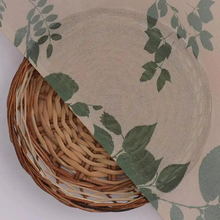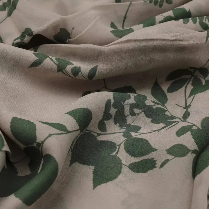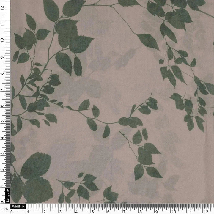 Olive Stalk And Leaves Digital Printed Fabric - Pure Georgette