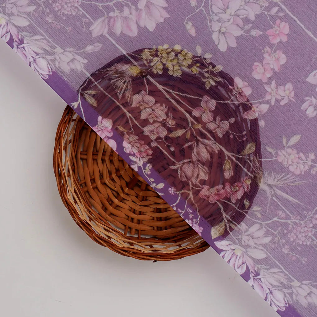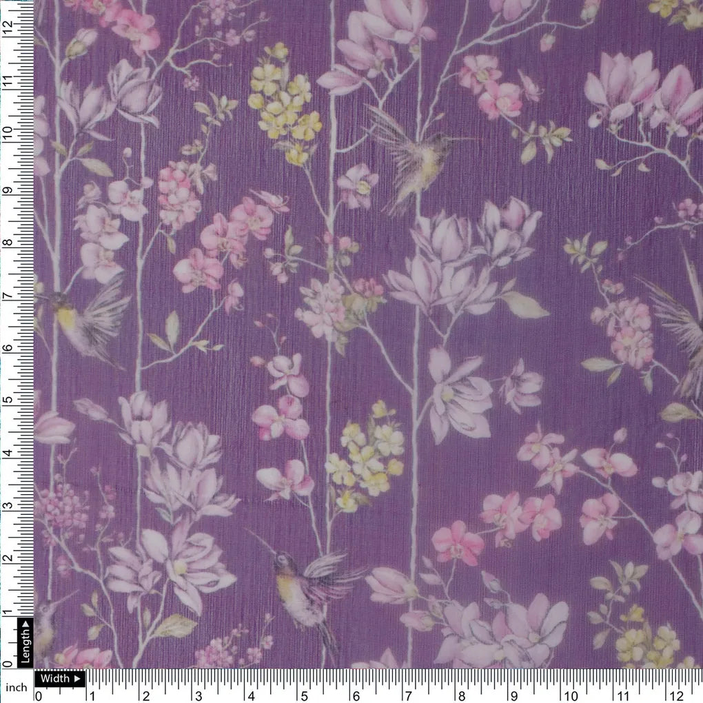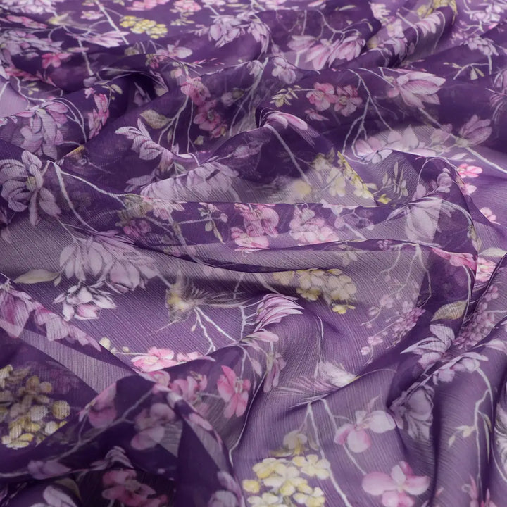 FAB VOGUE Studio Purple Floral Chiffon Fabric - Digital Printed Polyester
