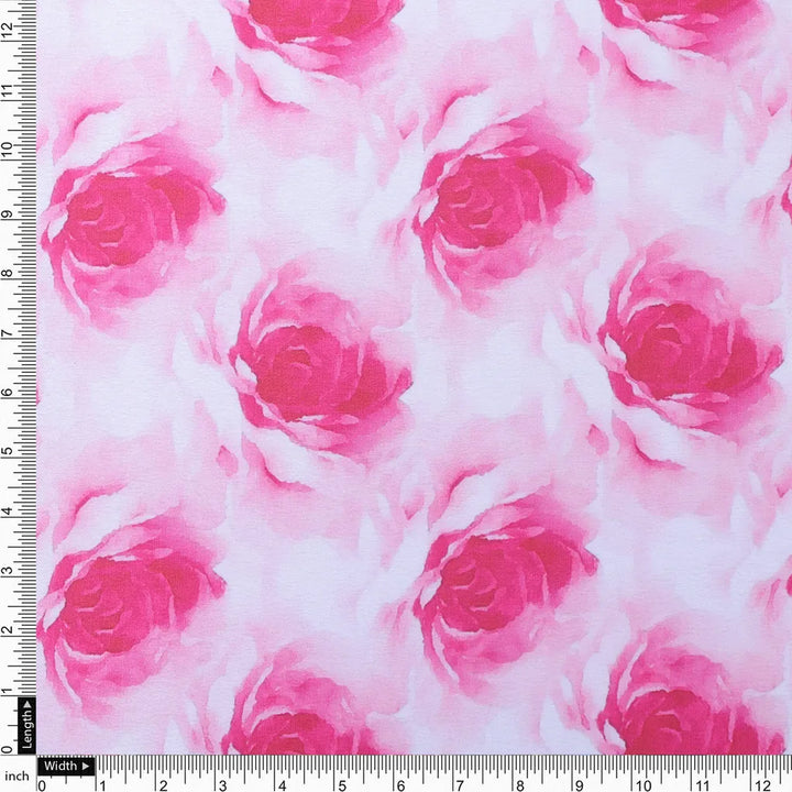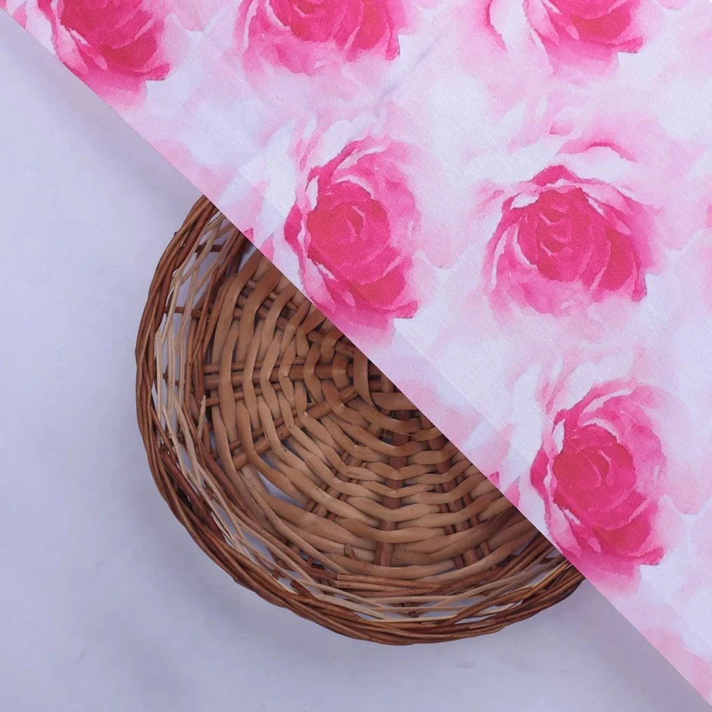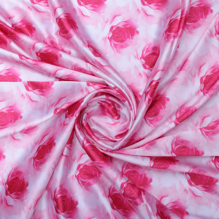 Pink Roses Printed Japan Satin Fabric