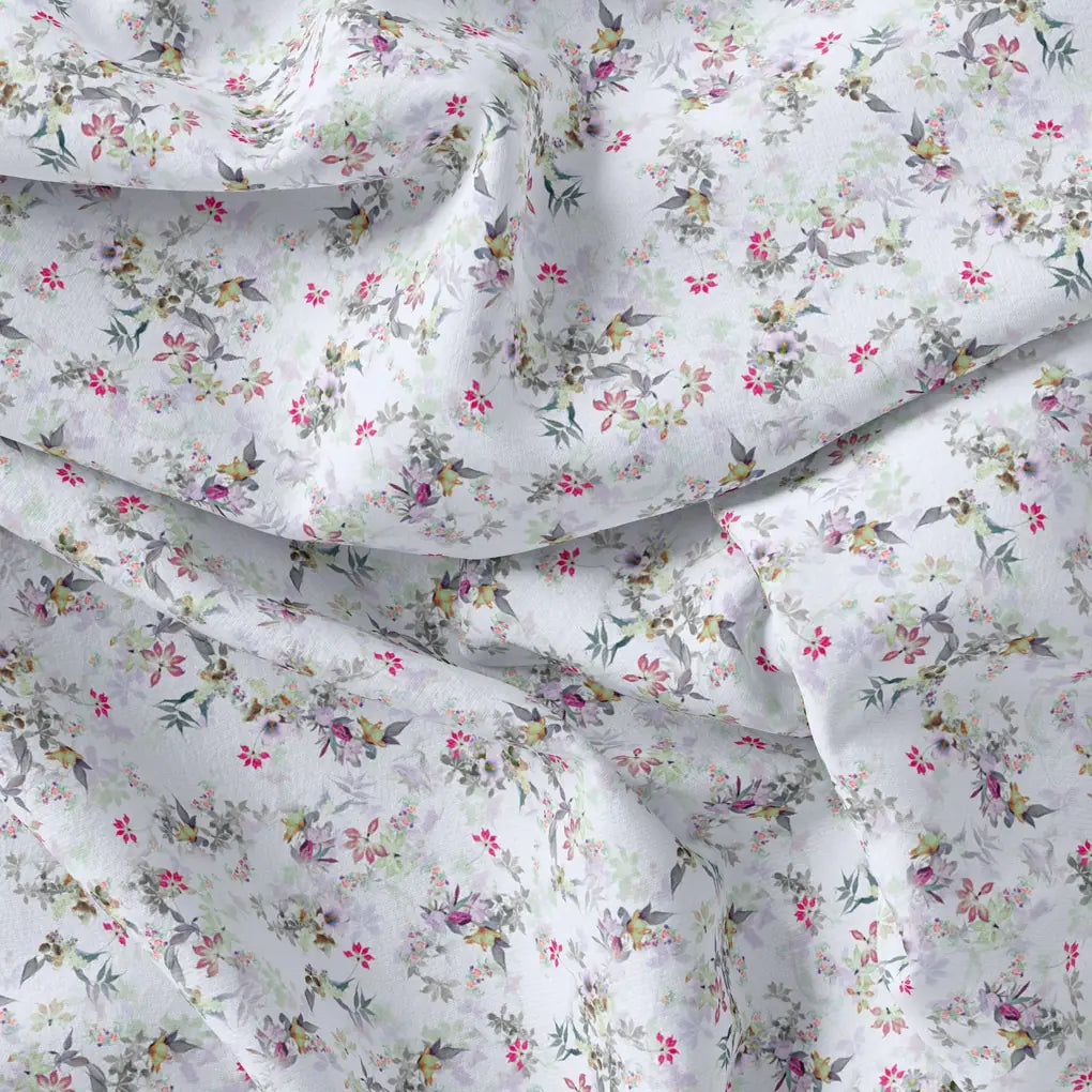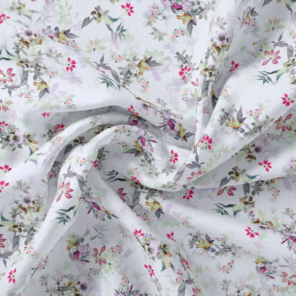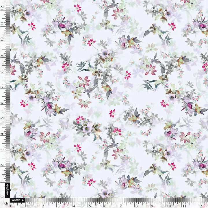Tiny Iris With Leaves Digital Printed Fabric - Japan Satin