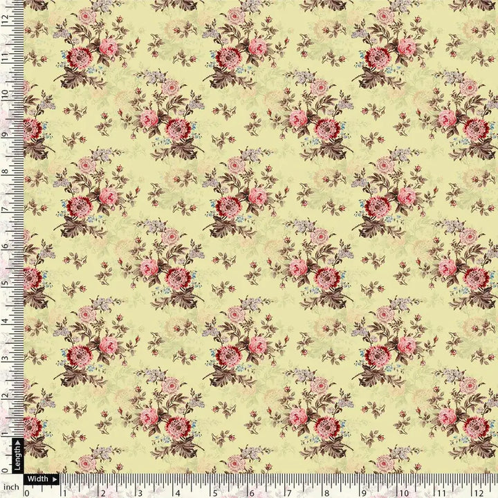 Chrysanthemum And Roses Bunch Digital Printed Fabric - Kora Silk