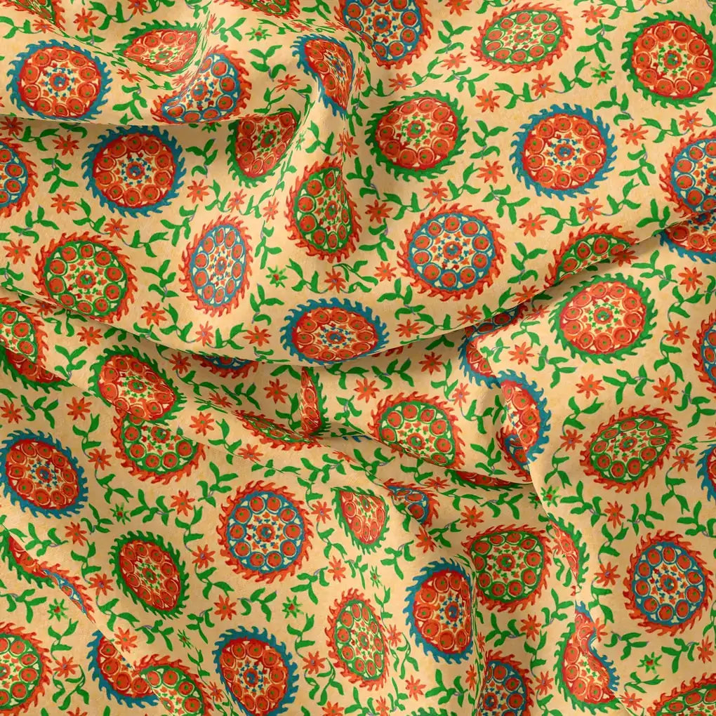 Watercolour Paint Suzani Pattern Digital Printed Fabric - Kora Silk