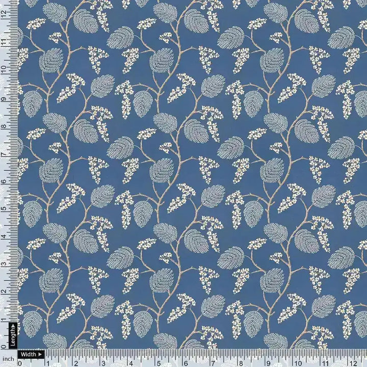 White Jasud Flower With Stalk Digital Printed Fabric - Kora Silk