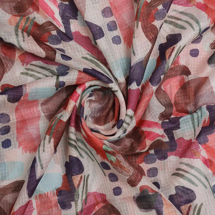 Our exquisite Geometric Print Kota Doria fabric from FAB VOGUE Studio features an eye-catching blend of geometric patterns in vibrant hues of yellow, orange, red, brown, pink, and blue. Crafted from the finest Kota Doria, this breathable and lightweight fabric is perfect for creating stunning garments and accessories that will turn heads. Its unique design and vibrant colors make it an ideal choice for adding a touch of ethnic elegance to your wardrobe.