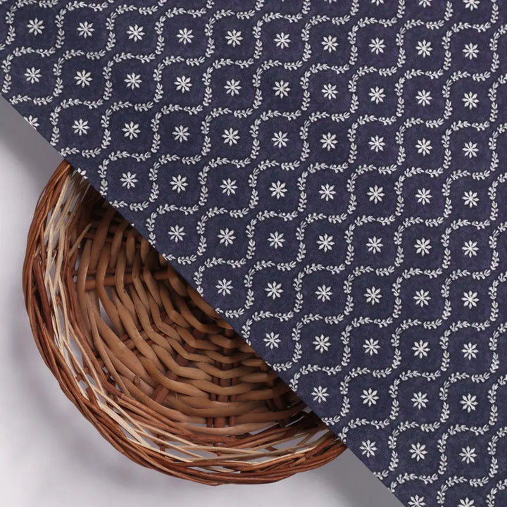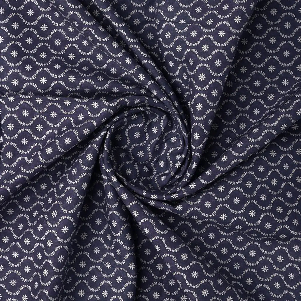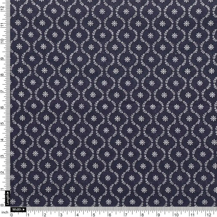 Attractive Tiny Blue Star Ogee Digital Printed Fabric - Pure Cotton