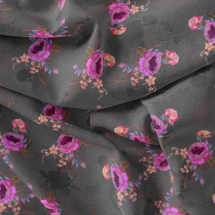 Lovely Peony With Wax Flower Digital Printed Fabric - Poly Muslin