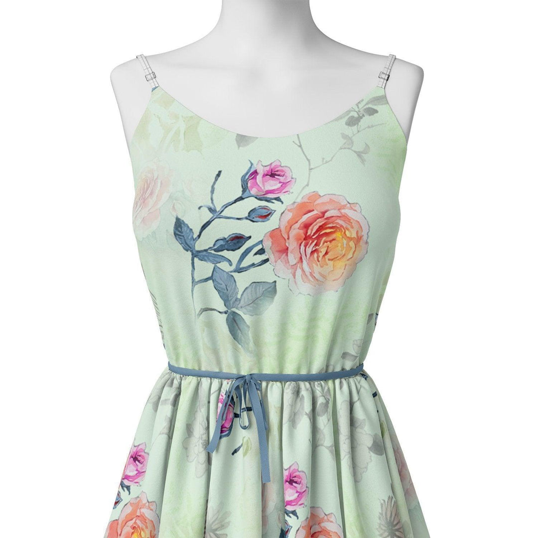 FAB VOGUE Studio presents Roses Floating on Pista Base Pure Cotton Kurtis Printed Fabric. This fabric is made of pure cotton, which makes it lightweight and breathable. It is digitally printed with a beautiful floral pattern in parrot color. The fabric is perfect for making kurtis, tops, tunics and dresses. Buy this gorgeous fabric now and create stylish outfits for all occasions.
