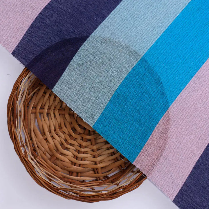 Classy Blue Strips Pure Cotton Digital Printed Fabric