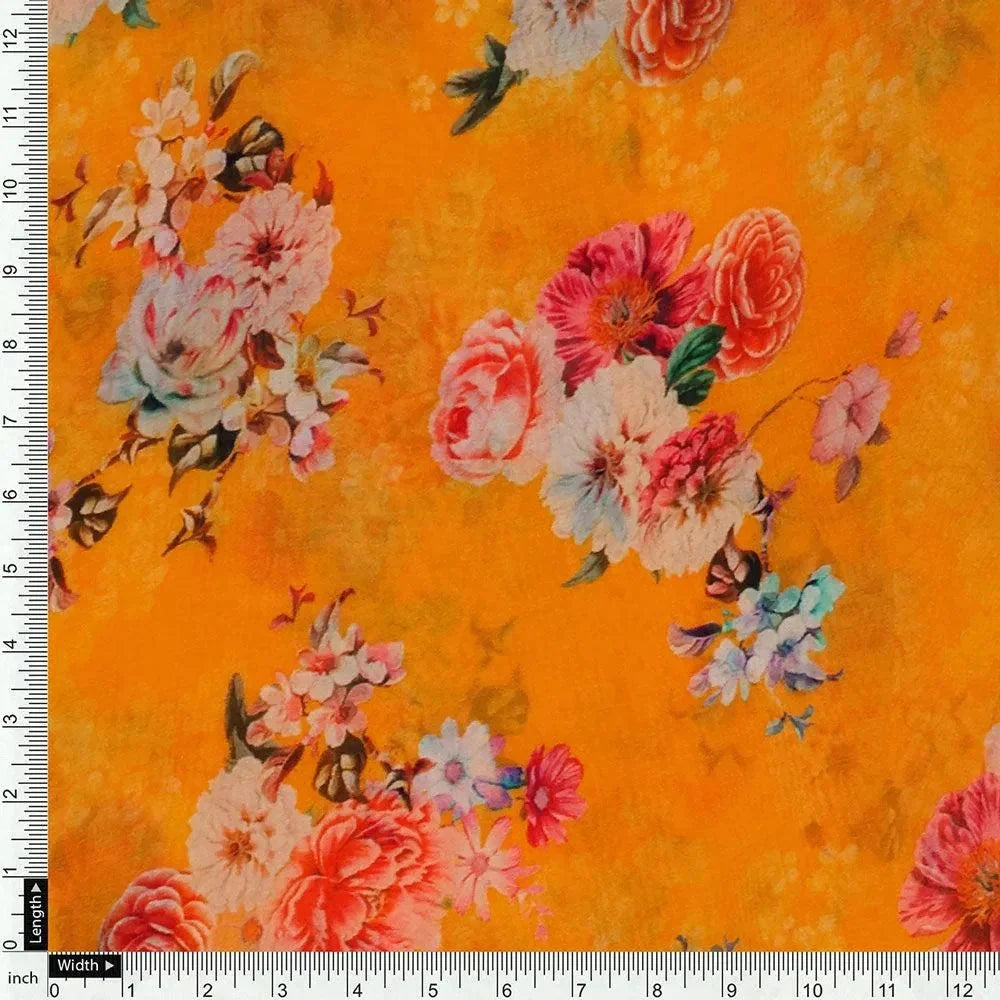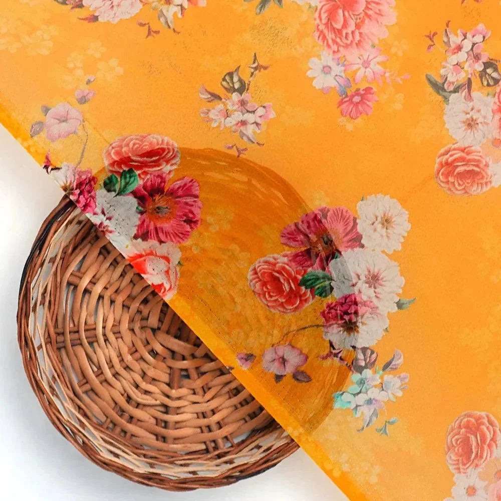 Beautiful Yellow Base Floral Bunch Digital Printed Fabric