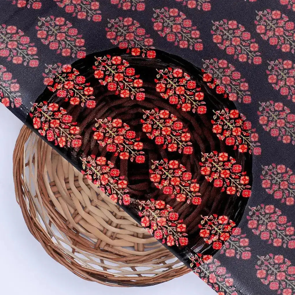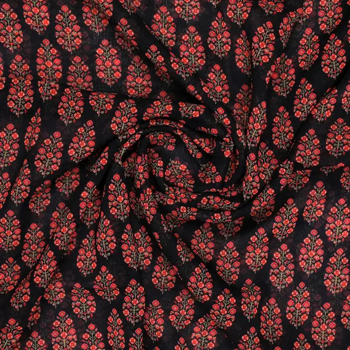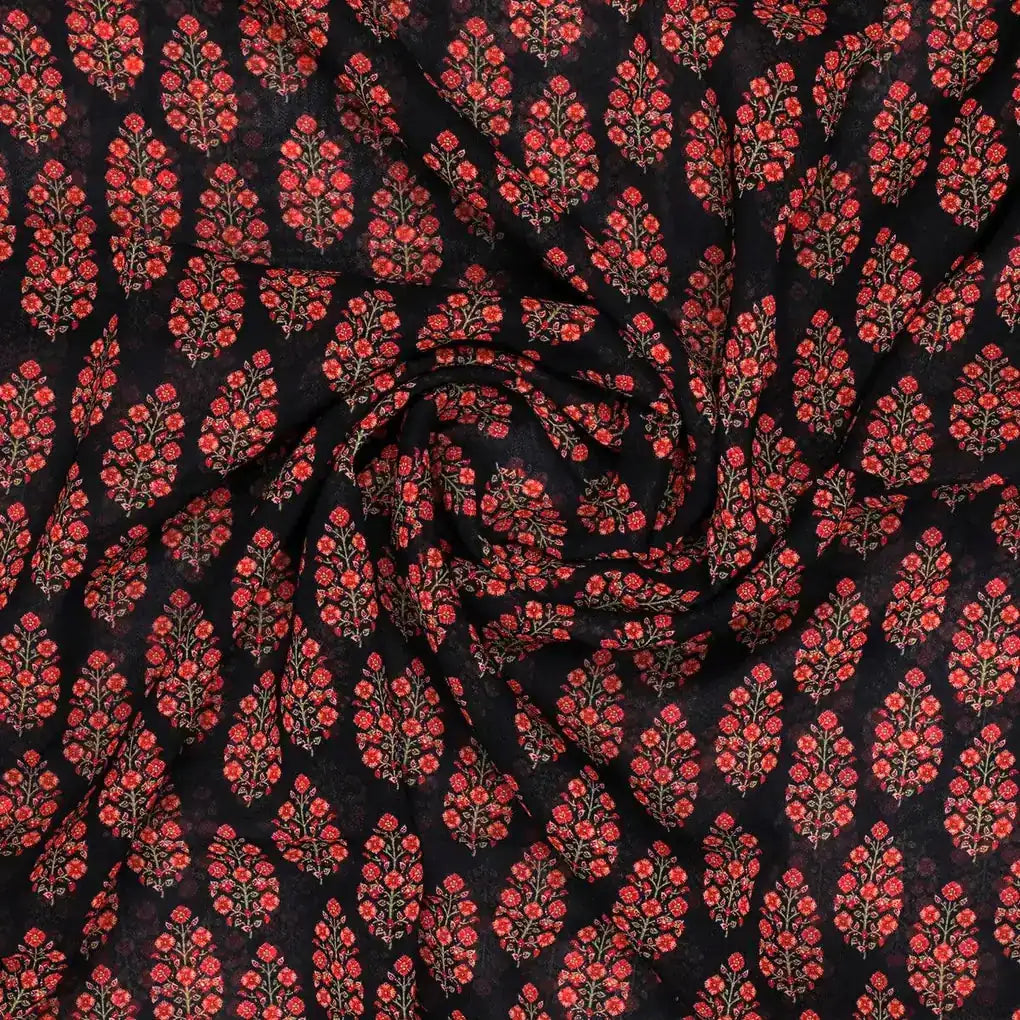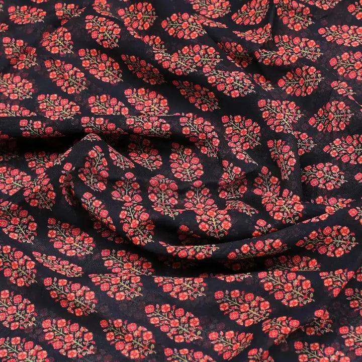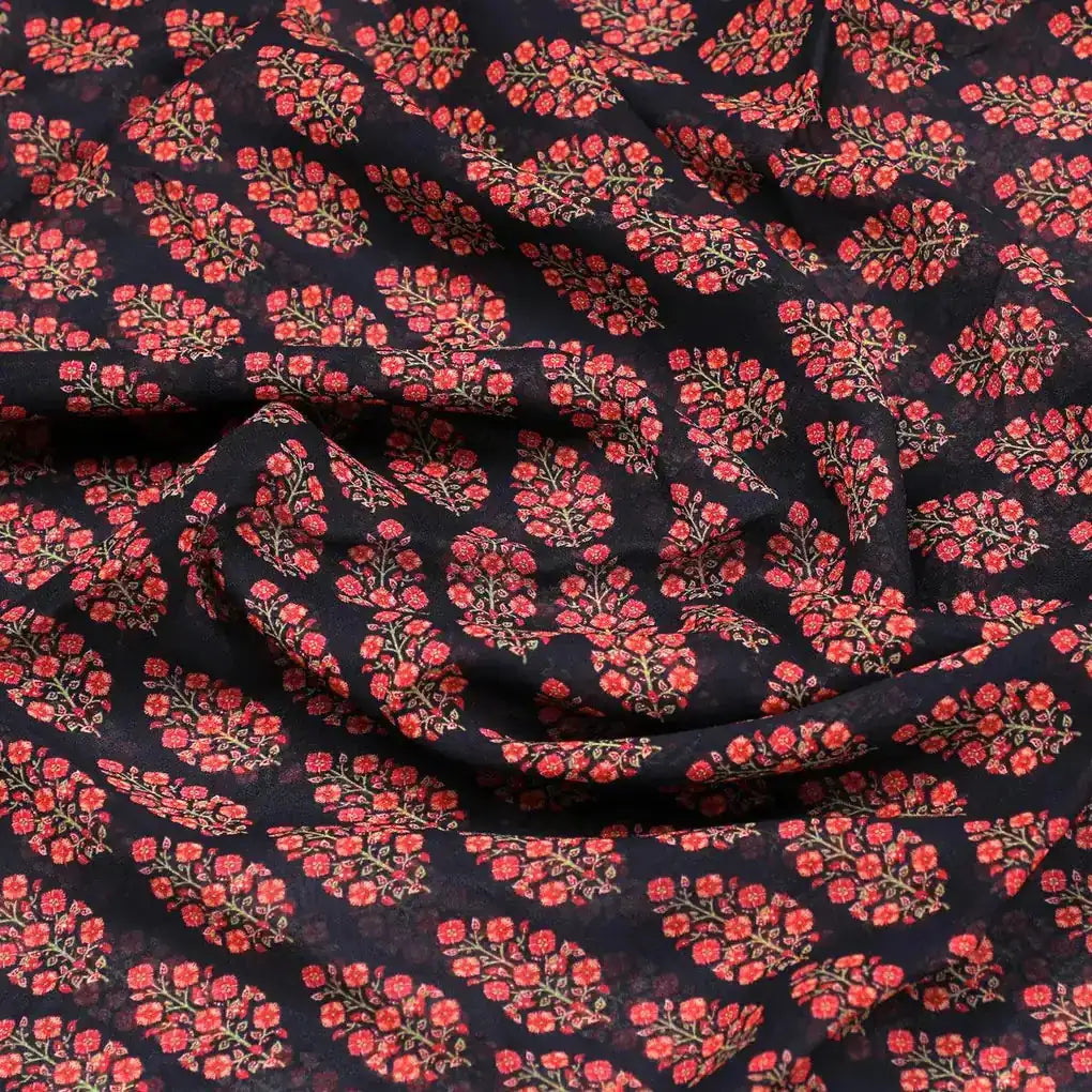 Discover the perfect fabric for your next design project with FAB VOGUE Studio's Red Floral Laying Over Black Pure Georgette Gown Printed Fabric. Crafted from a premium quality viscose, this printed fabric is made from pure georgette and features a stunning floral pattern in a classic black hue. Whether you're creating a gown, dress, or a blouse, this fabric is sure to bring your vision to life. Shop now at FAB VOGUE Studio and find the perfect fabric for your next project.