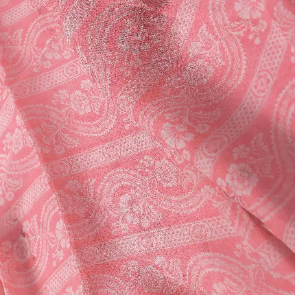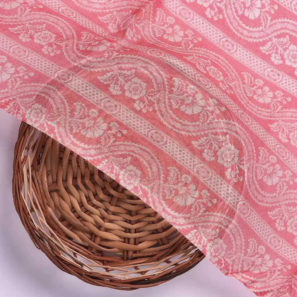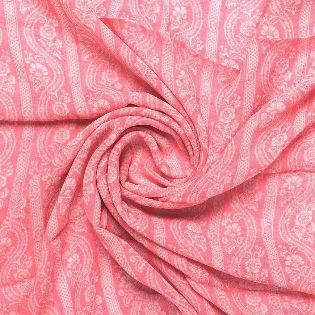 Bring the charm of Southwestern Design to your wardrobe with this beautiful Pure Georgette Saree Printed Fabric from FAB VOGUE Studio. Crafted from high quality Viscose, this fabric has a light pink color with a strips pattern that will add a unique touch to your look. Buy this fabric now and make your own saree or other clothing with it.