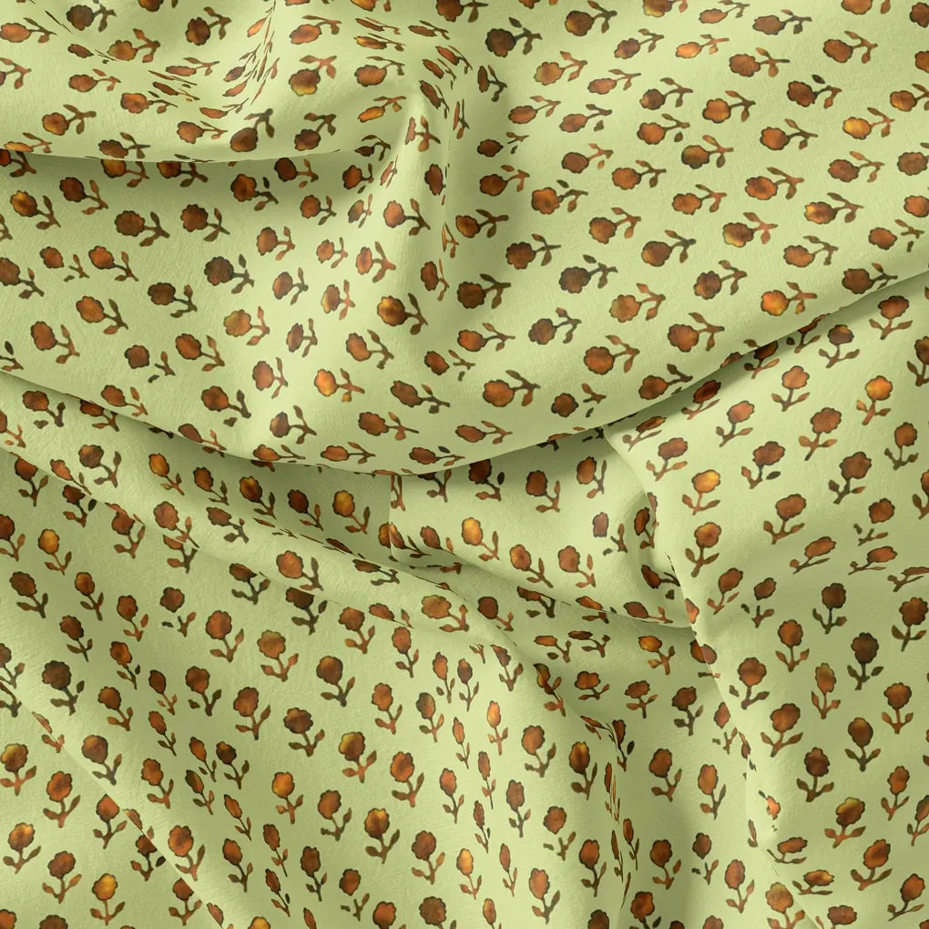 Tiny Golden Flower With Deco Colour Digital Printed Fabric - Pure Georgette