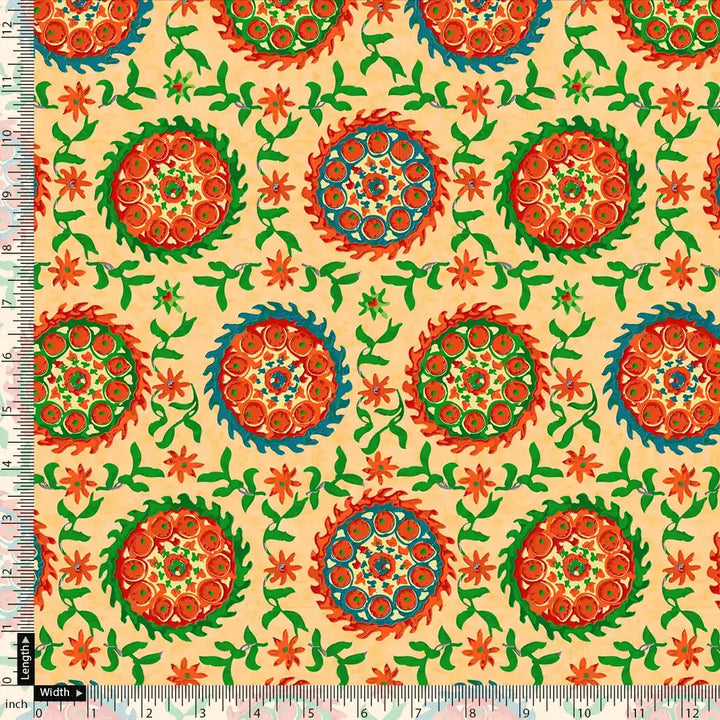 Watercolour Paint Suzani Pattern Digital Printed Fabric - Pure Muslin