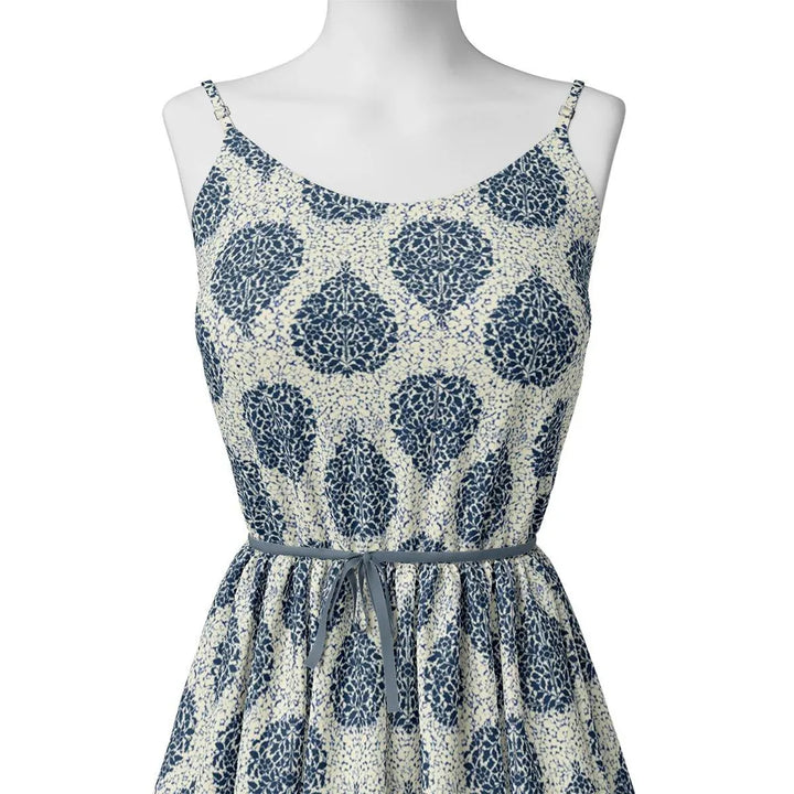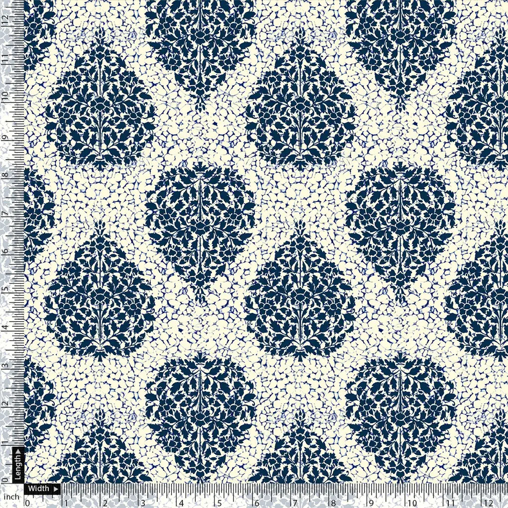 Aspen Blue Leaves Creamy Stone Digital Printed Fabric - Cotton