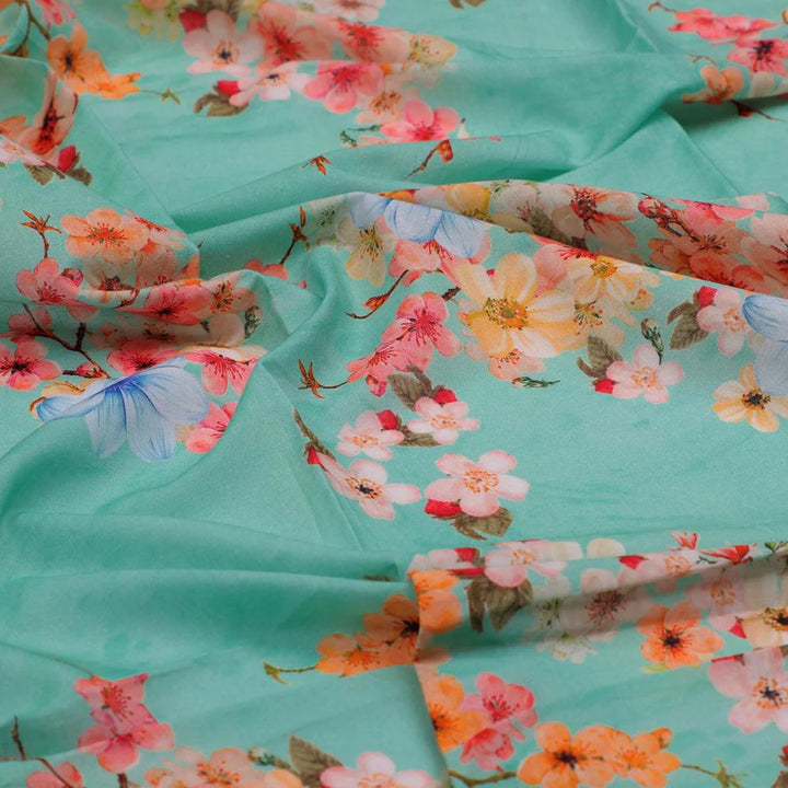 Make your wardrobe look stylish with this Lovely Geranium Flower Pure Cotton Digital Printed Fabric from FAB VOGUE Studio. Crafted from pure cotton, this fabric is soft to touch and breathable, making it ideal for designing fashionable outfits. The digital printed floral pattern in sky color adds a touch of glamour to your wardrobe. Shop this premium quality fabric now and flaunt your style.