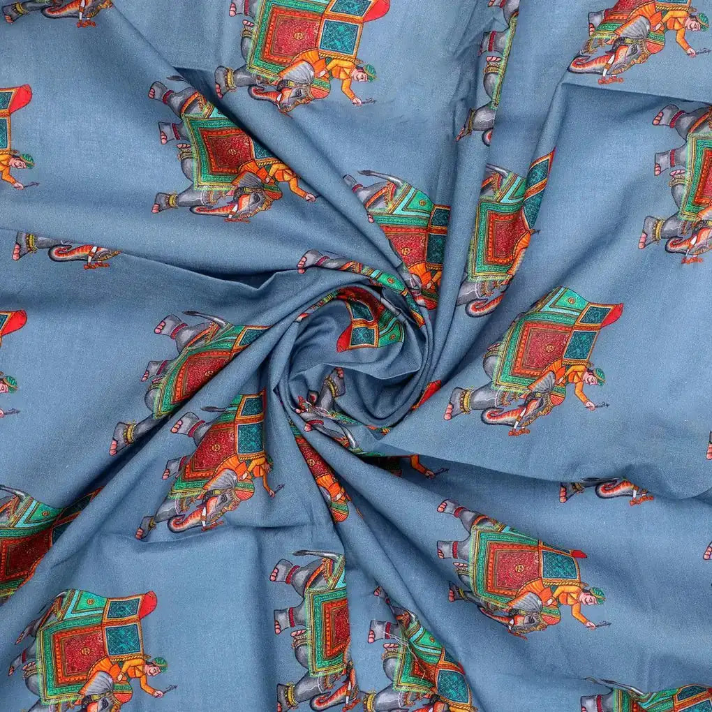 Unique Seamless Repeat With Kabul Colour Digital Printed Fabric - Cotton
