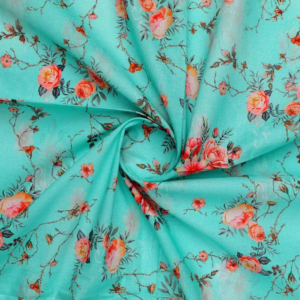 ₹ 489.00 per meterCool Summer Carnation Flower Digital Printed Fabric - Cotton