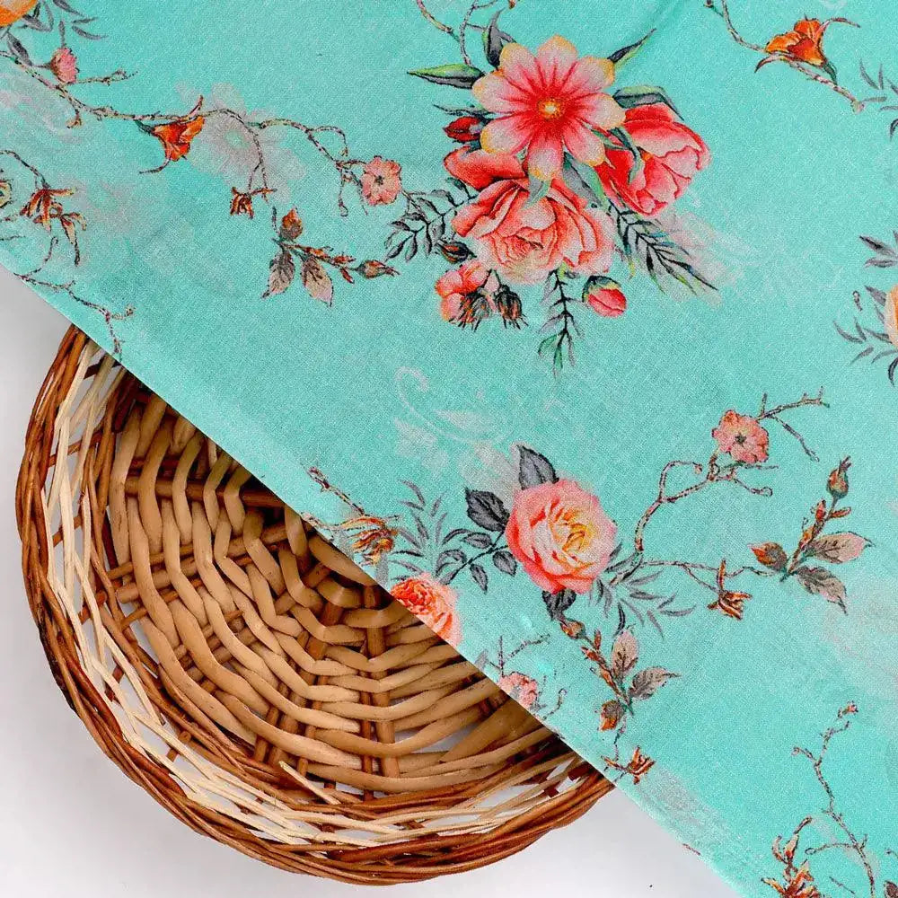Vintage Floral Art Collection Digital Printed Fabric - Cotton