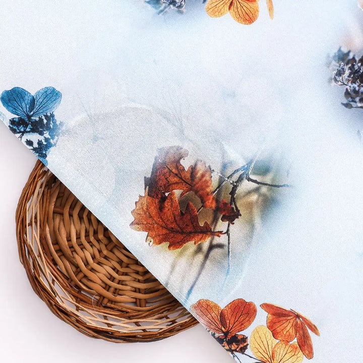 Classy Blue Floral Digital Printed Silk Crepe Fabric