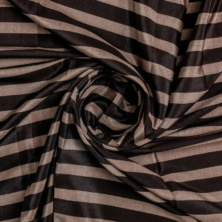 Classy Brown Strip Digital Printed Silk Crepe Fabric