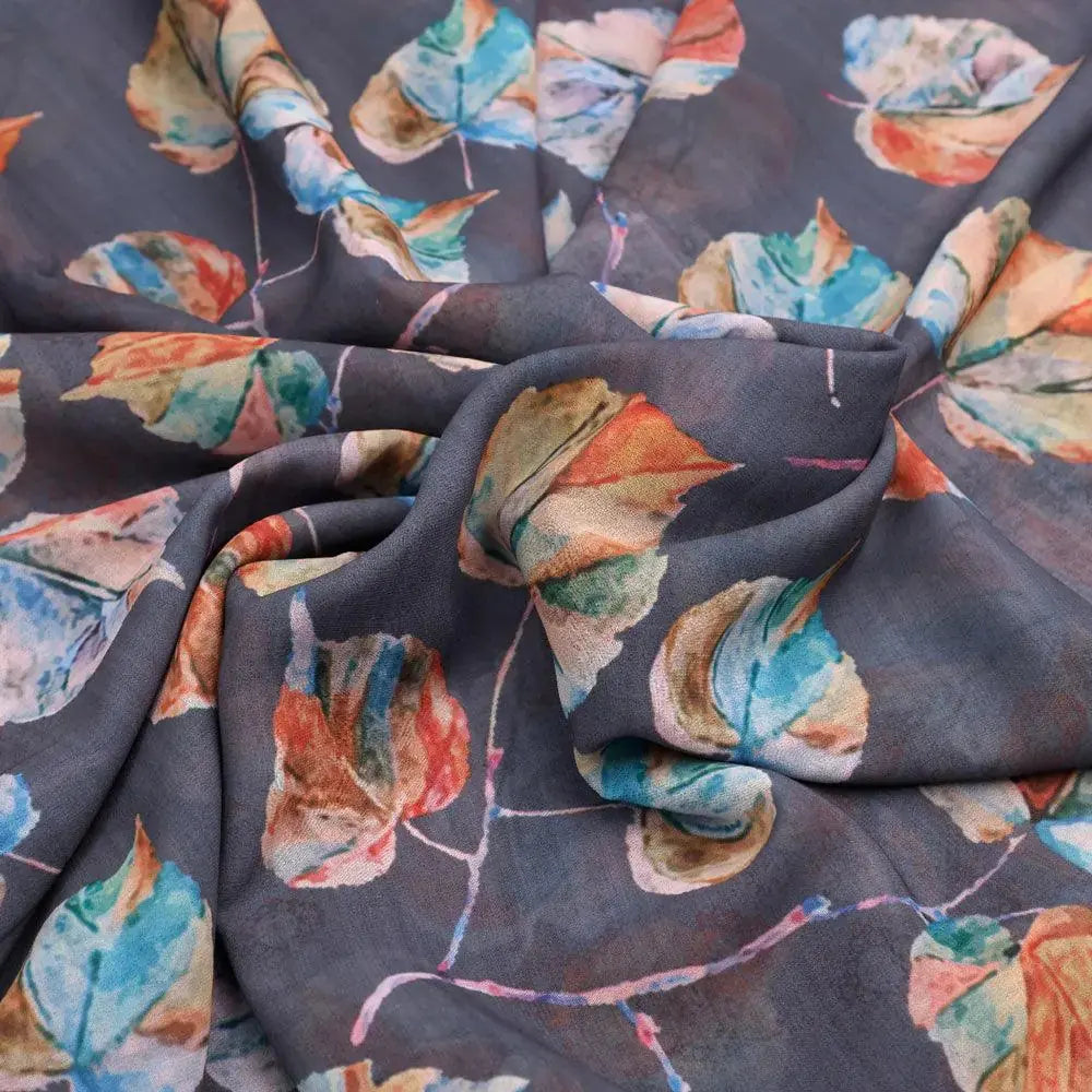 Give your wardrobe a touch of elegance with FAB VOGUE Studio's Colourful Floating Leaves Weightless Digital Printed Fabric. This beautiful fabric is made of polyester, making it lightweight and easy to work with. The fabric features an eye-catching pattern of leaves in brown, adding a unique and stylish look to any outfit. With its soft and smooth texture, this fabric is perfect for creating garments that are comfortable and fashionable. Whether you're making a dress, shirt, or skirt, this fabric is sure to add a touch of sophistication and style.