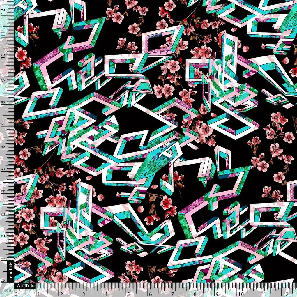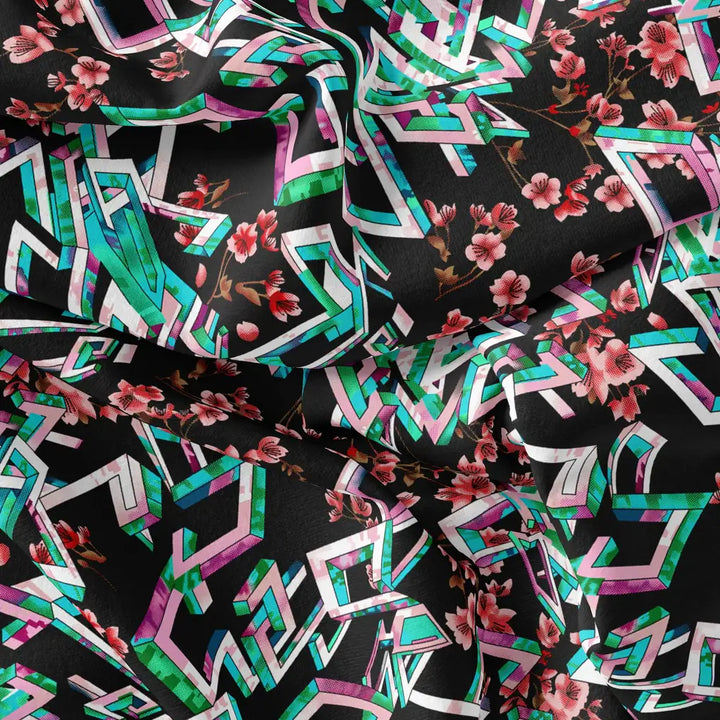 Morden Colourful Chintz Flower With Creative Box Digital Printed Fabric - Weightless