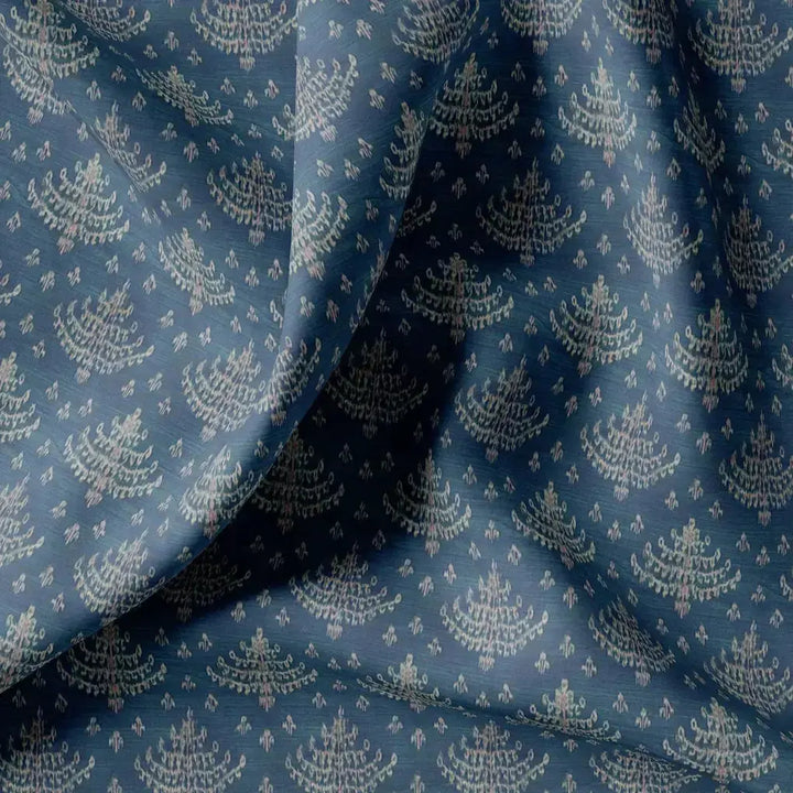 Suzani Over Blue Base Digital Printed Fabric
