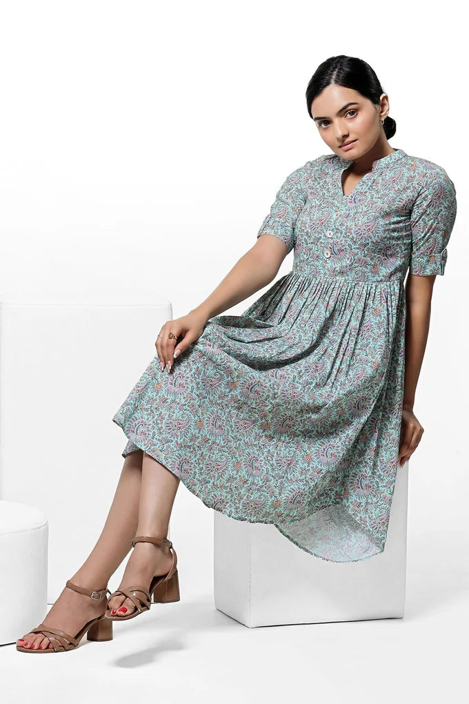 Regular price ₹ 2,399.00 Sale price ₹ 2,029.00Mehndi Color Floral Print Dress