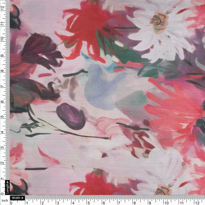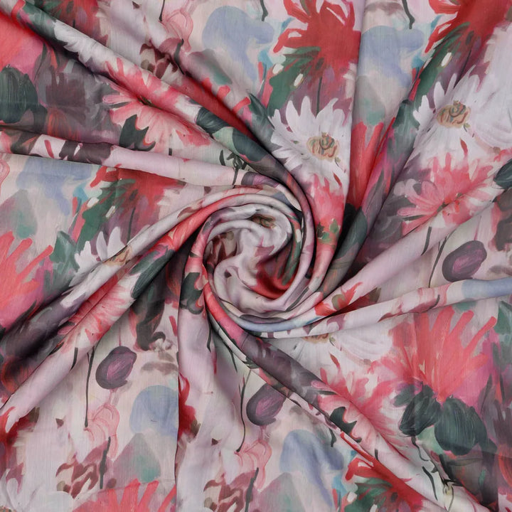 Experience the exquisite allure of our Linen Satin Floral Printed Fabric. This stunning fabric features a beautiful watercolor-inspired floral pattern that evokes a sense of tranquility and elegance. The delicate pink hue is accented with pops of red, green, white, and purple, adding a touch of vibrancy. The linen satin weave creates a luxurious feel that drapes beautifully, making it perfect for crafting a wide range of projects. This fabric is perfect for creating stunning dresses, tops, skirts, and scarves. It can also be used to elevate your home decor with tablecloths, curtains, and cushions. Get creative with this versatile fabric and let your imagination run wild!