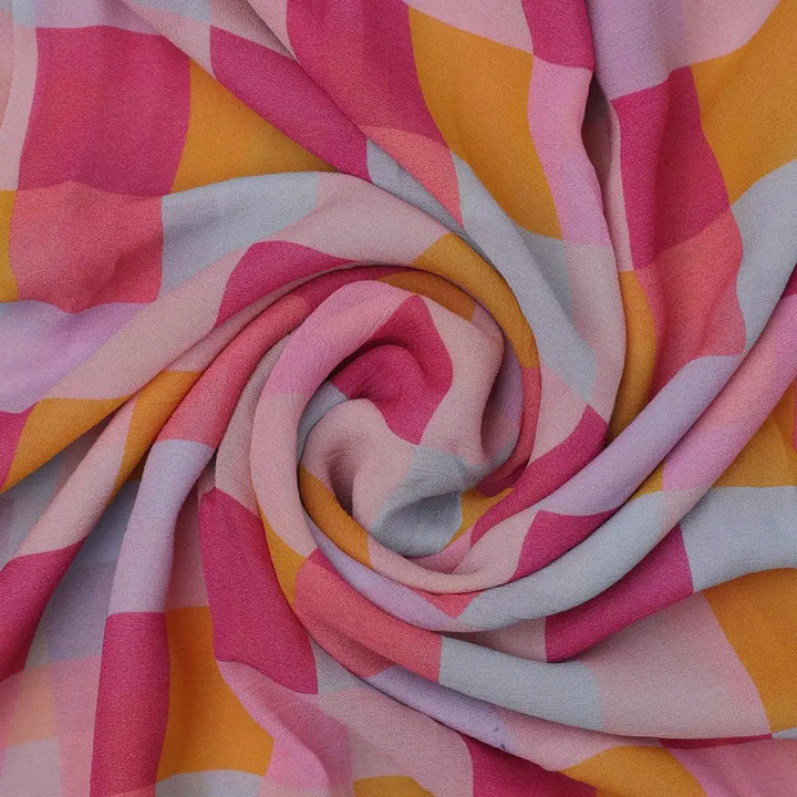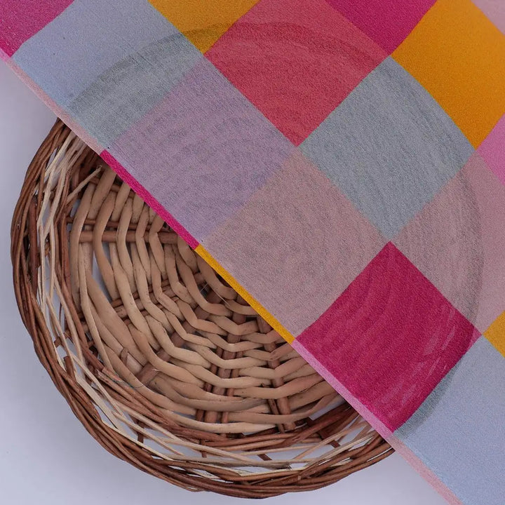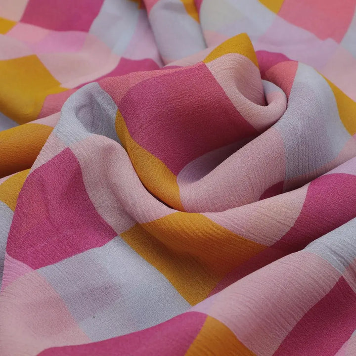 Buffalo Checks Pink And Yellow Digital Printed Fabric - Pure Georgette
